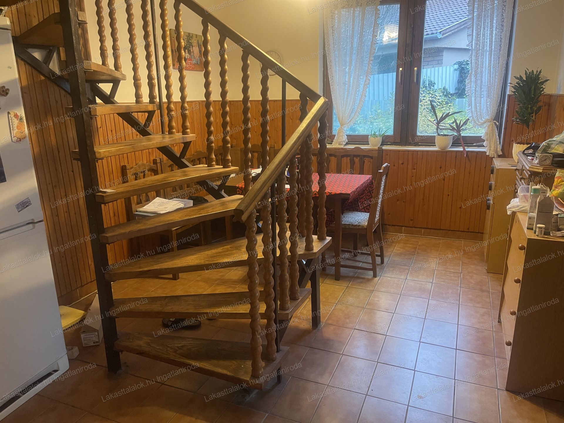 Alsó szinten: szoba, szoba, előszoba, Wc, fürdőszoba, konyha, étkező, spájz