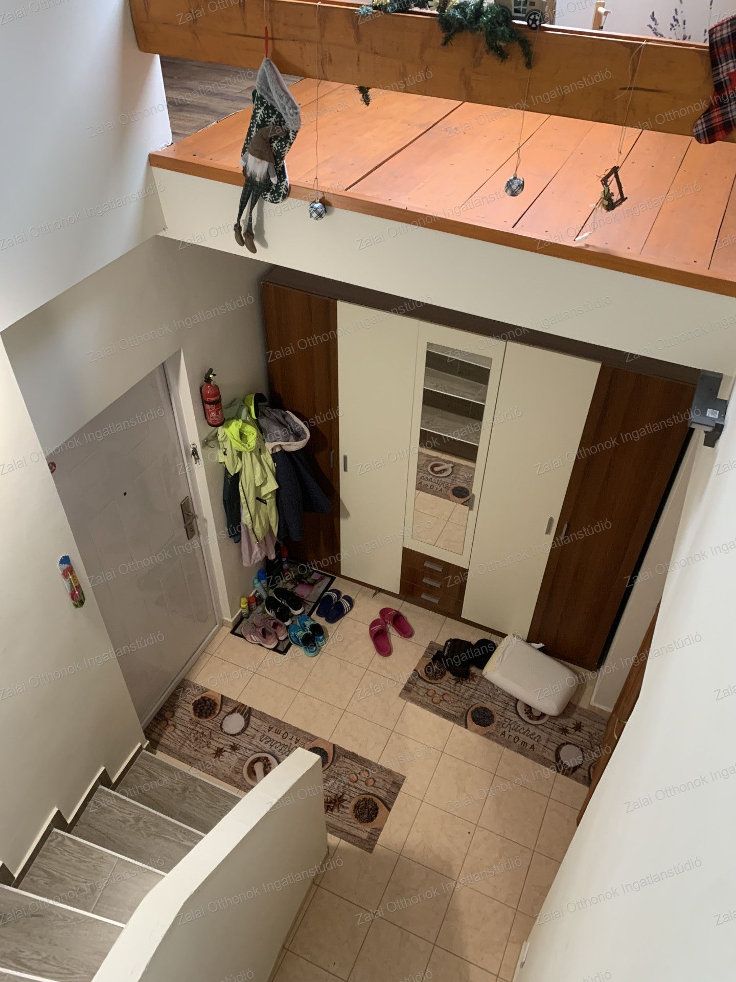 Két bejárattal rendelkezik így abszolút szeparáltan megközelíthető a földszinti és az emeleti lakrész is. Az emeletre stabil, járólapozott lépcső vezet.