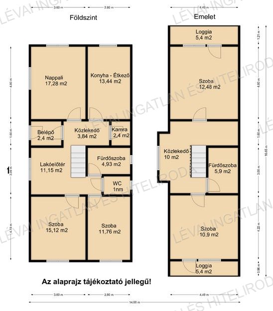 - Tetőtér: 2 szoba, fürdőszoba, előtér; ERKÉLY mindkét emeleti szobához.
