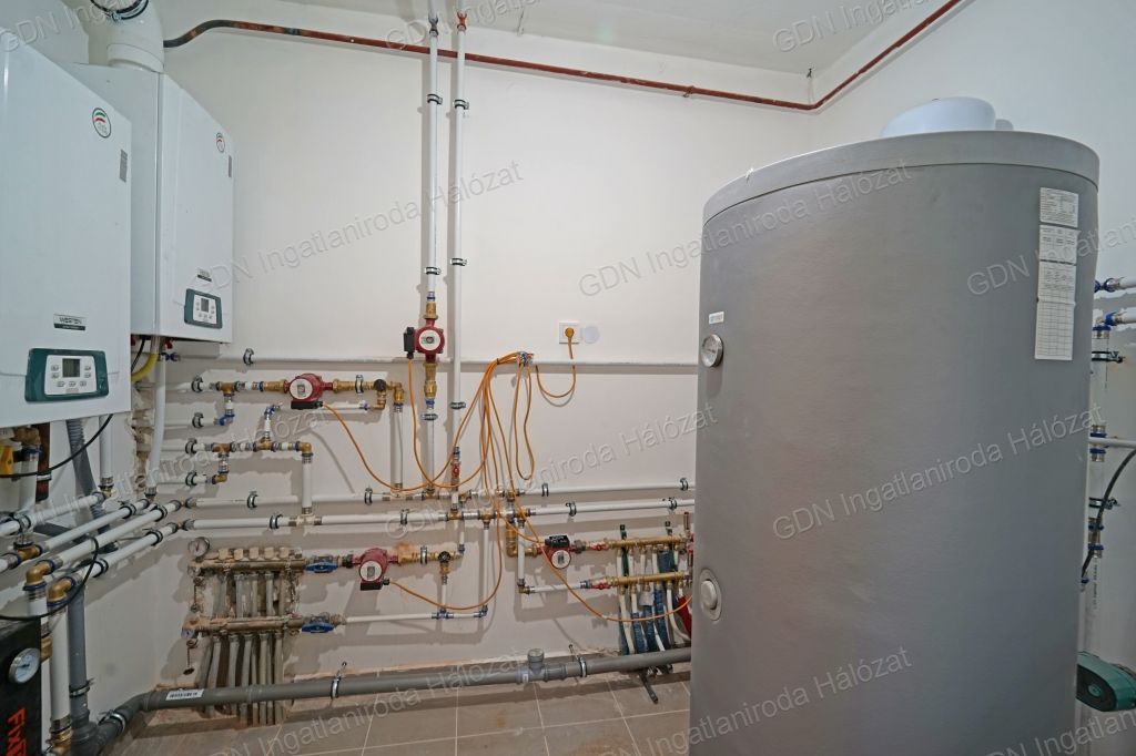 A hűtésről 10db daikin inverteres klíma, a fűtésről kondenzációs gázkazán gondoskodik, a földszinten, padló fűtéssel, a szuterén szinten és az emeleten radiátoros hőleadással.
