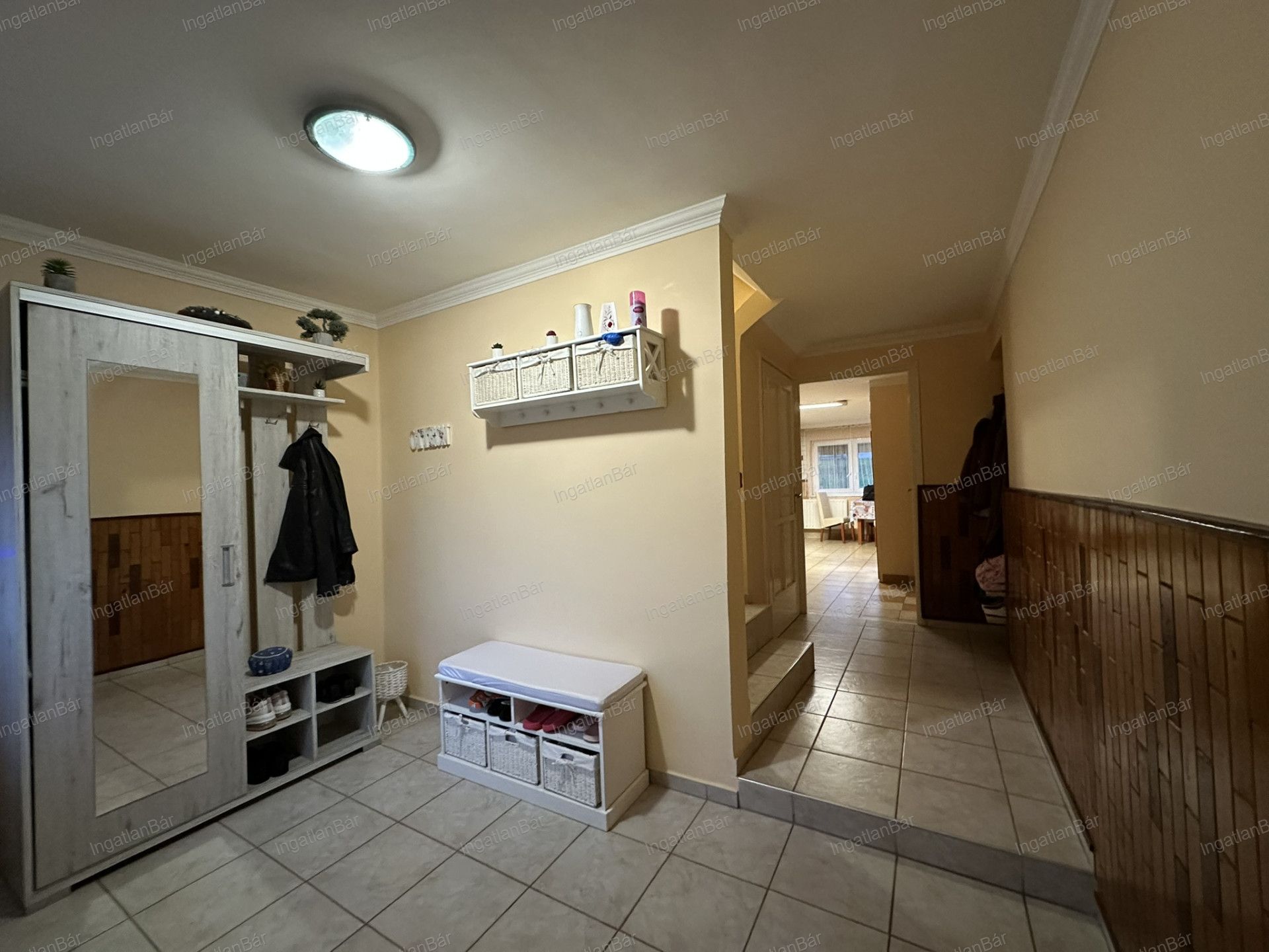 A ház hangulata az első pillanattól átadja azt a nyugodt, otthonos életérzést, ahol mindenki megtalálja a saját terét – a földszint tágas életterétől az emelet intimebb szobáiig.
