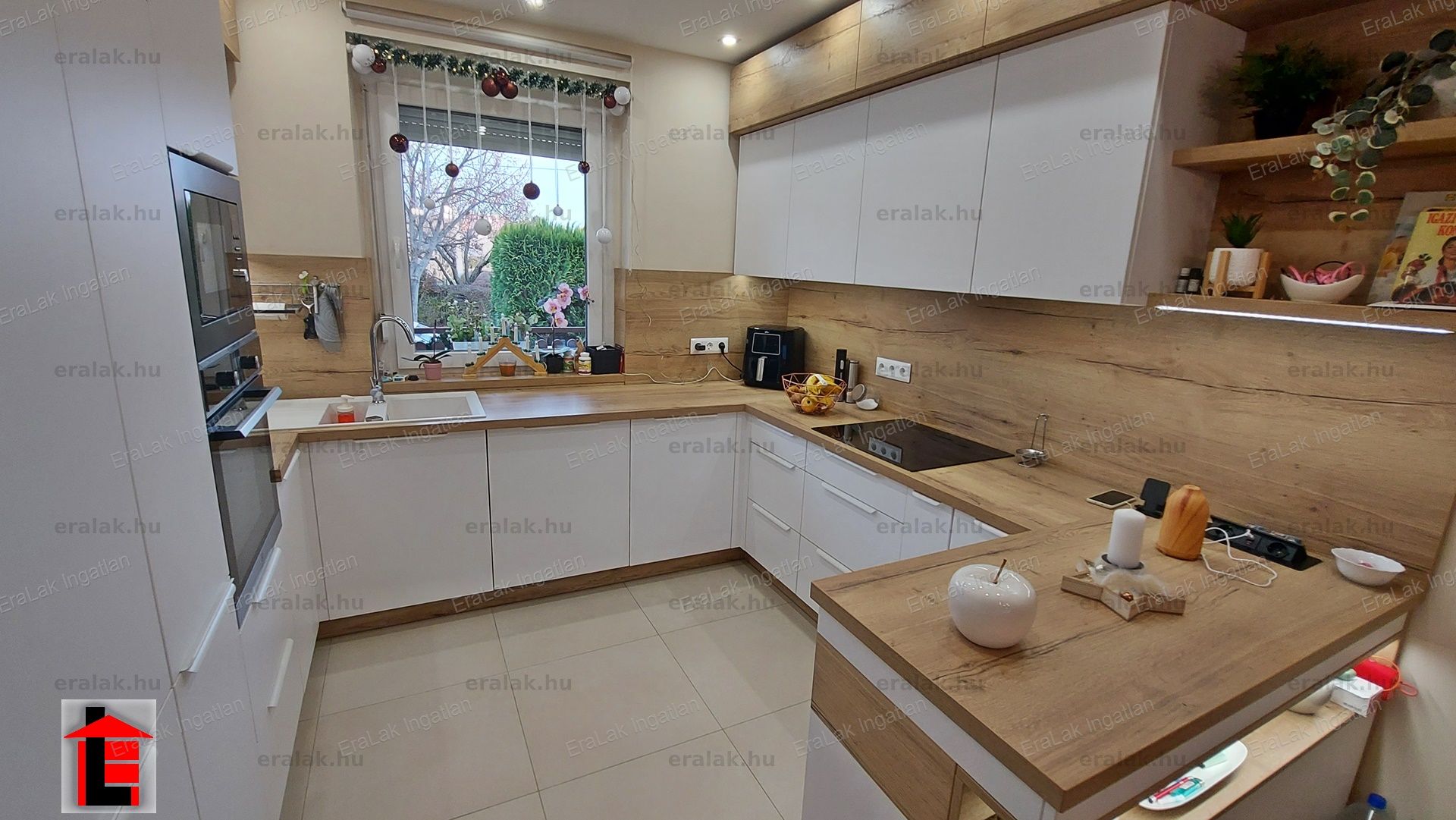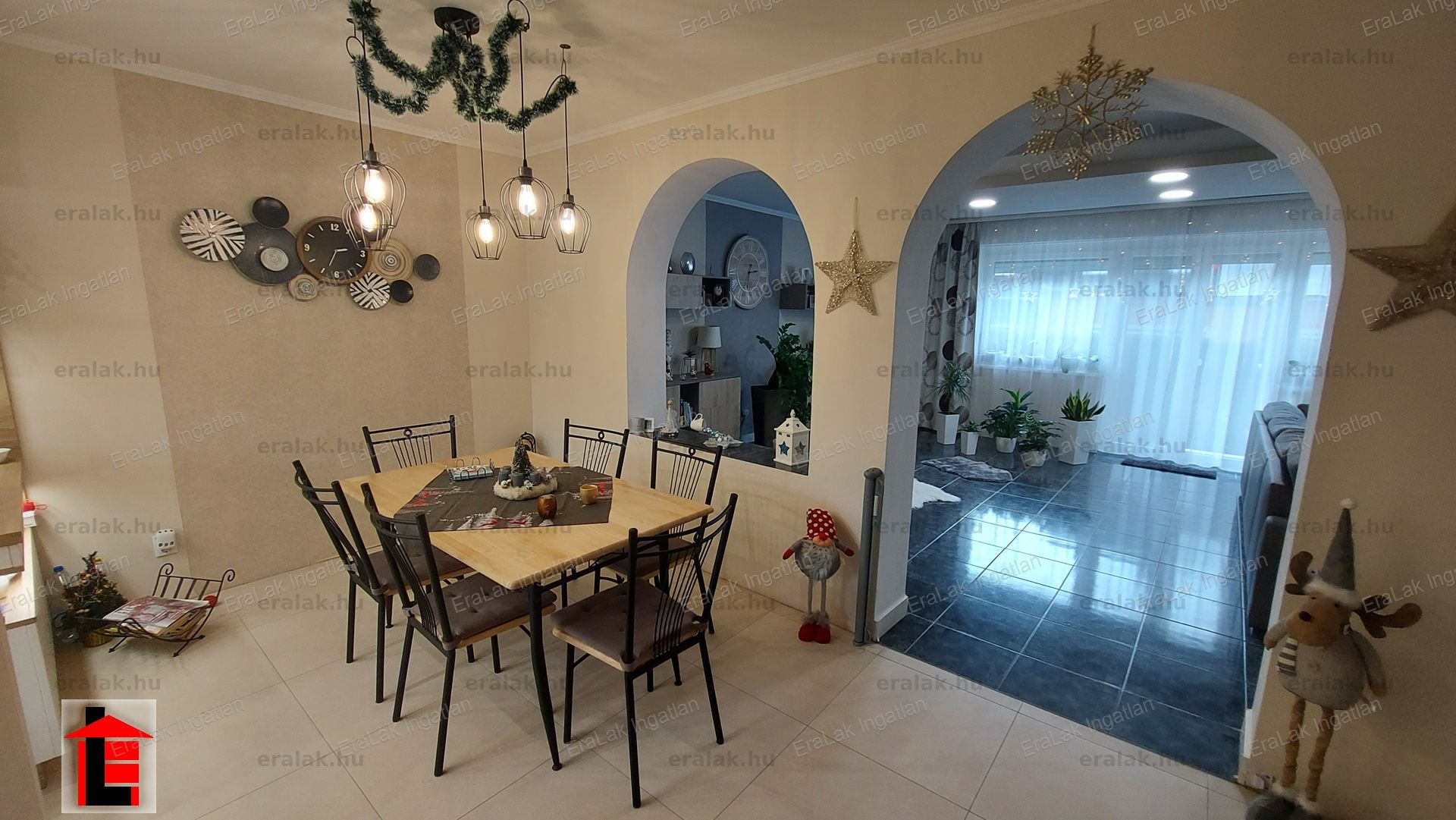 Győr-Ergényi lakótelepen tágas családi ház kis kerttel garázzsal amerikai konyhás nappalival 4 egész szobás hálóval