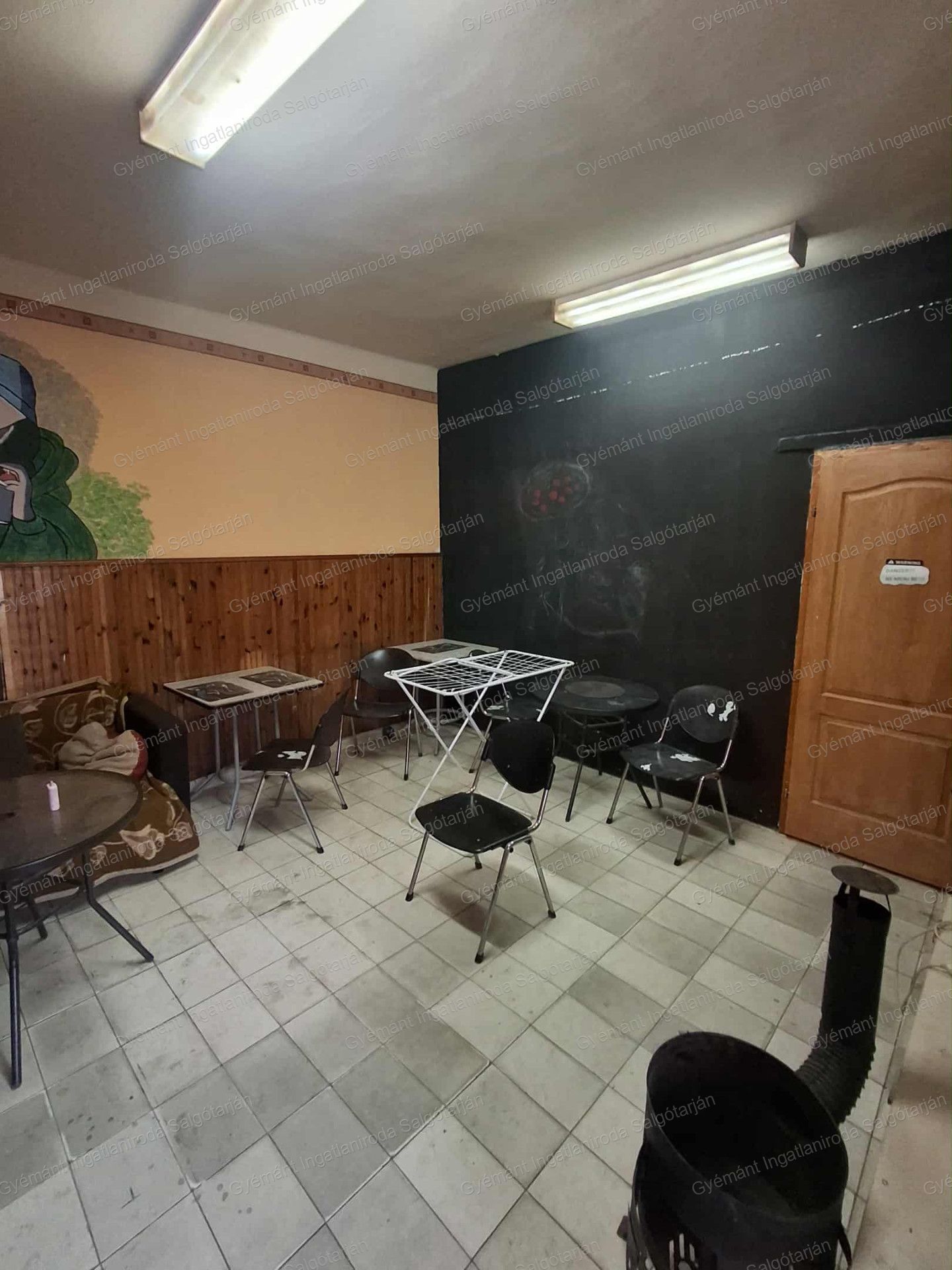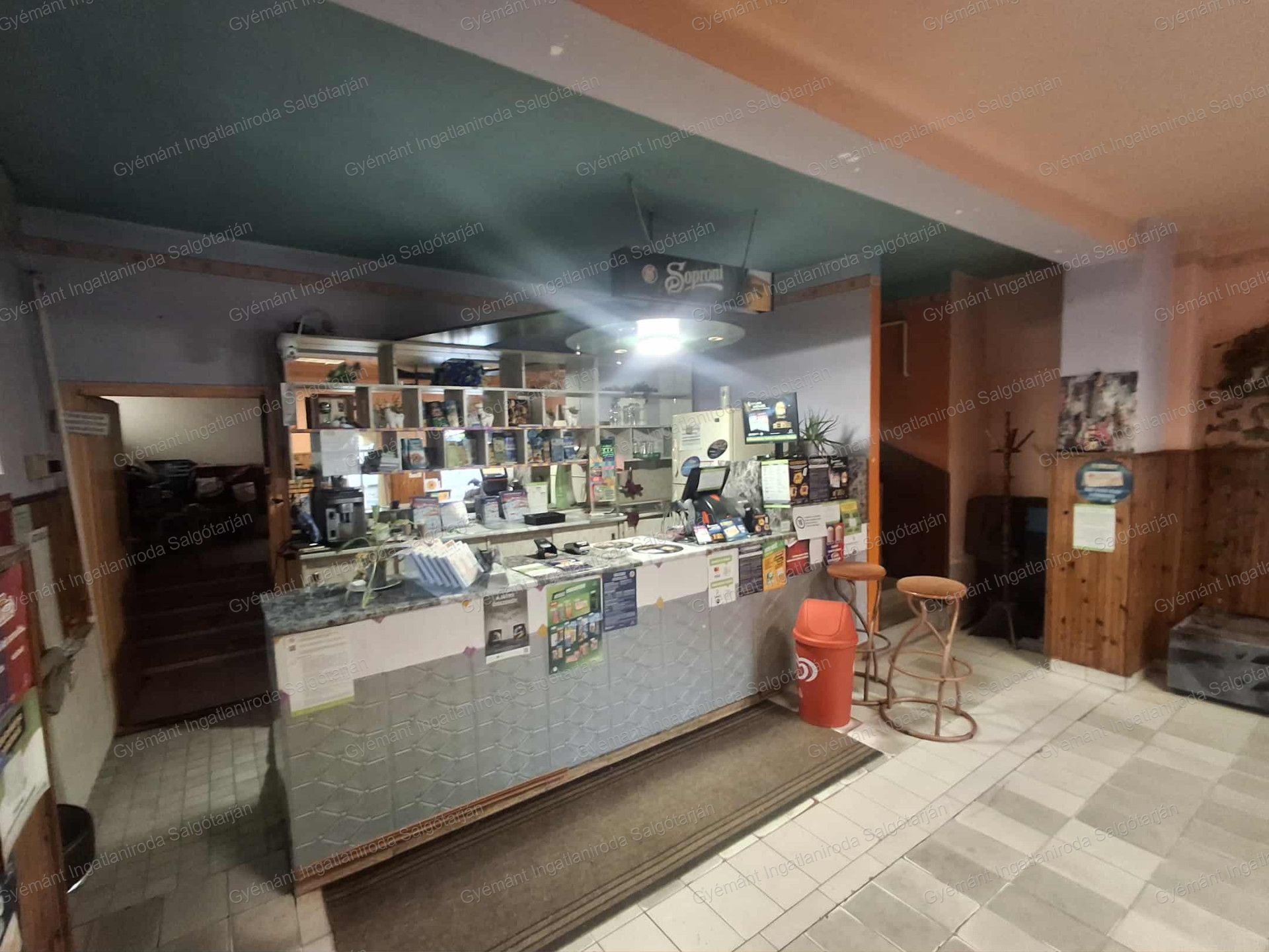Az ingatlan 4 bejáratos. Belépve az eladótérbe érünk. Onnan jobbra van egy helyiség, jobb oldalt szemben lehet felmenni az illemhelyiségekhez. Van egy férfi wc, női wc, és egy személyzeti wc, valamint folyosó.