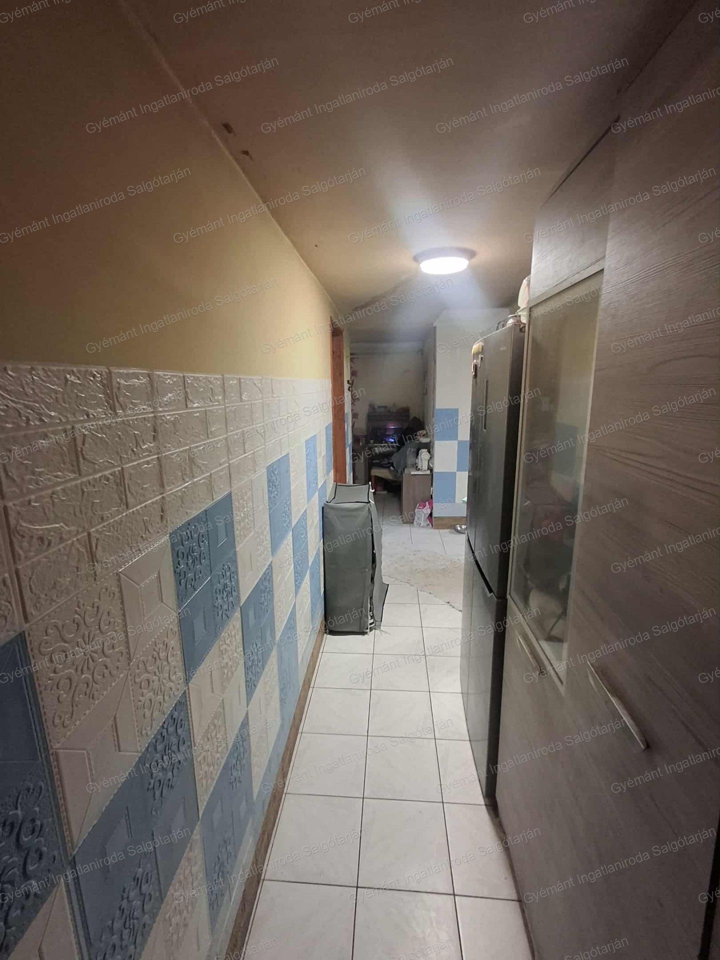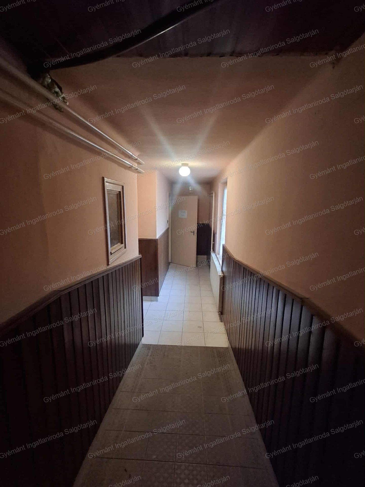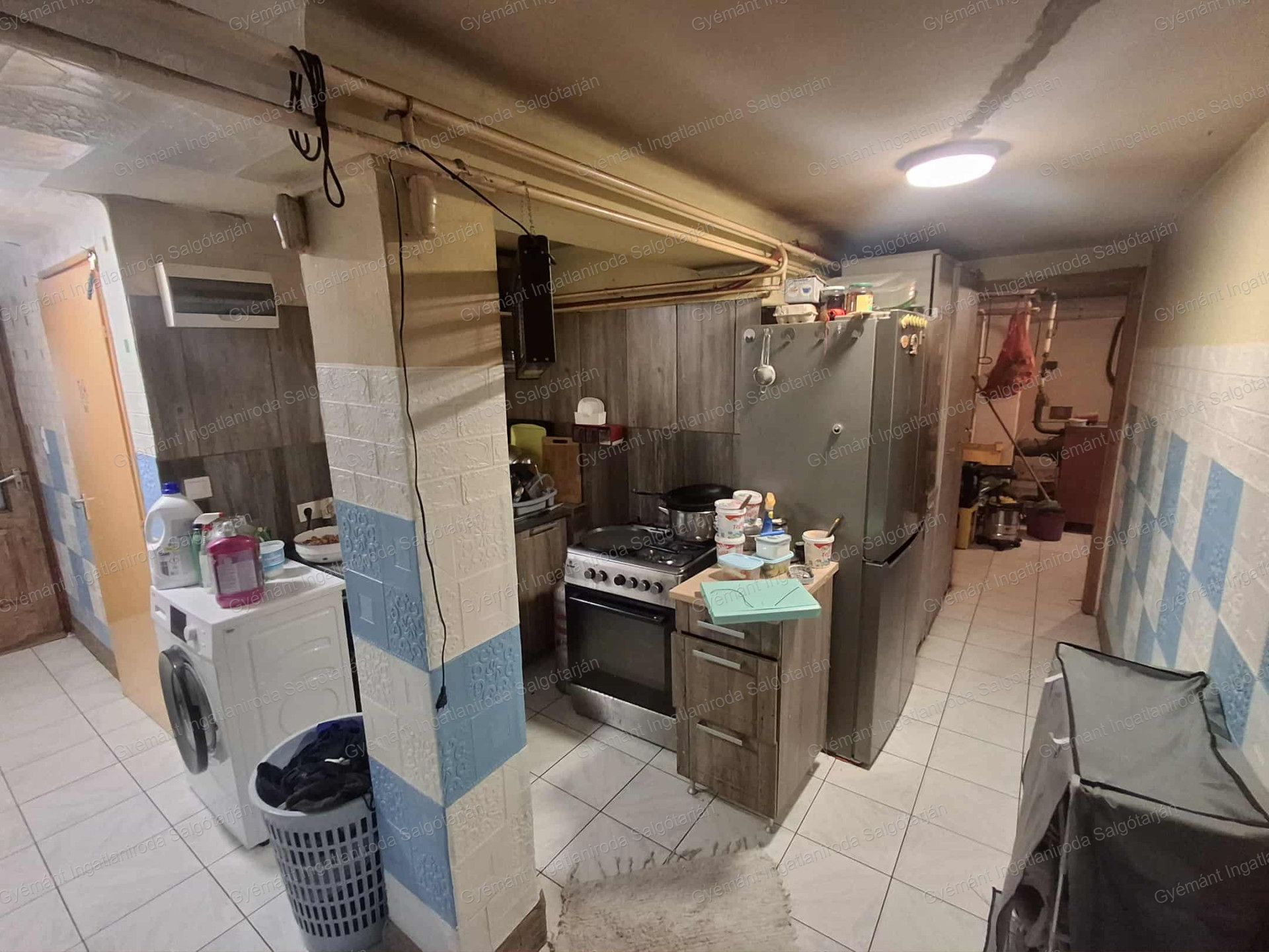 Az eladótérből bal oldalt tudunk felmenni a lakrészbe. Először a kazánházba érkezünk, majd tovább haladva a folyosón megérkezünk a konyhába, étkezőbe, tovább haladva a szobákba és a fürdőszobába.