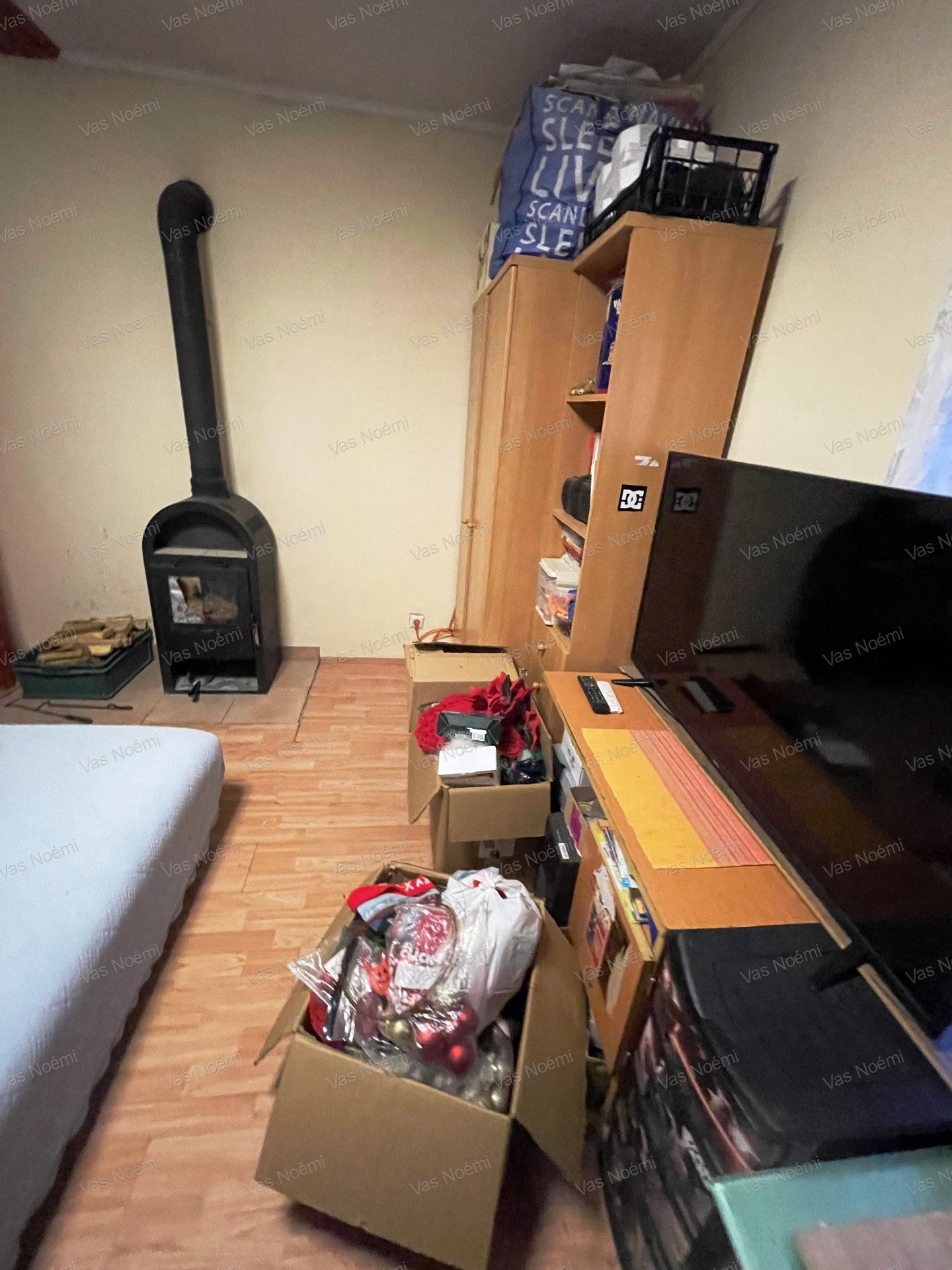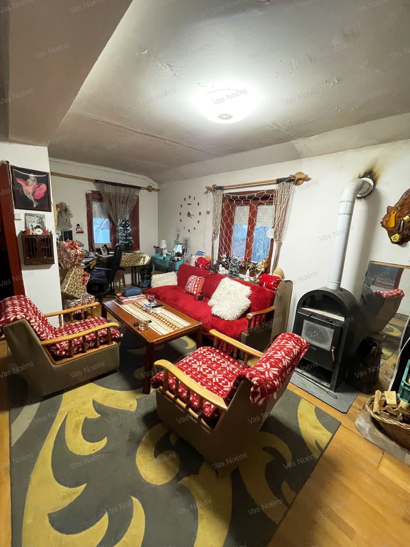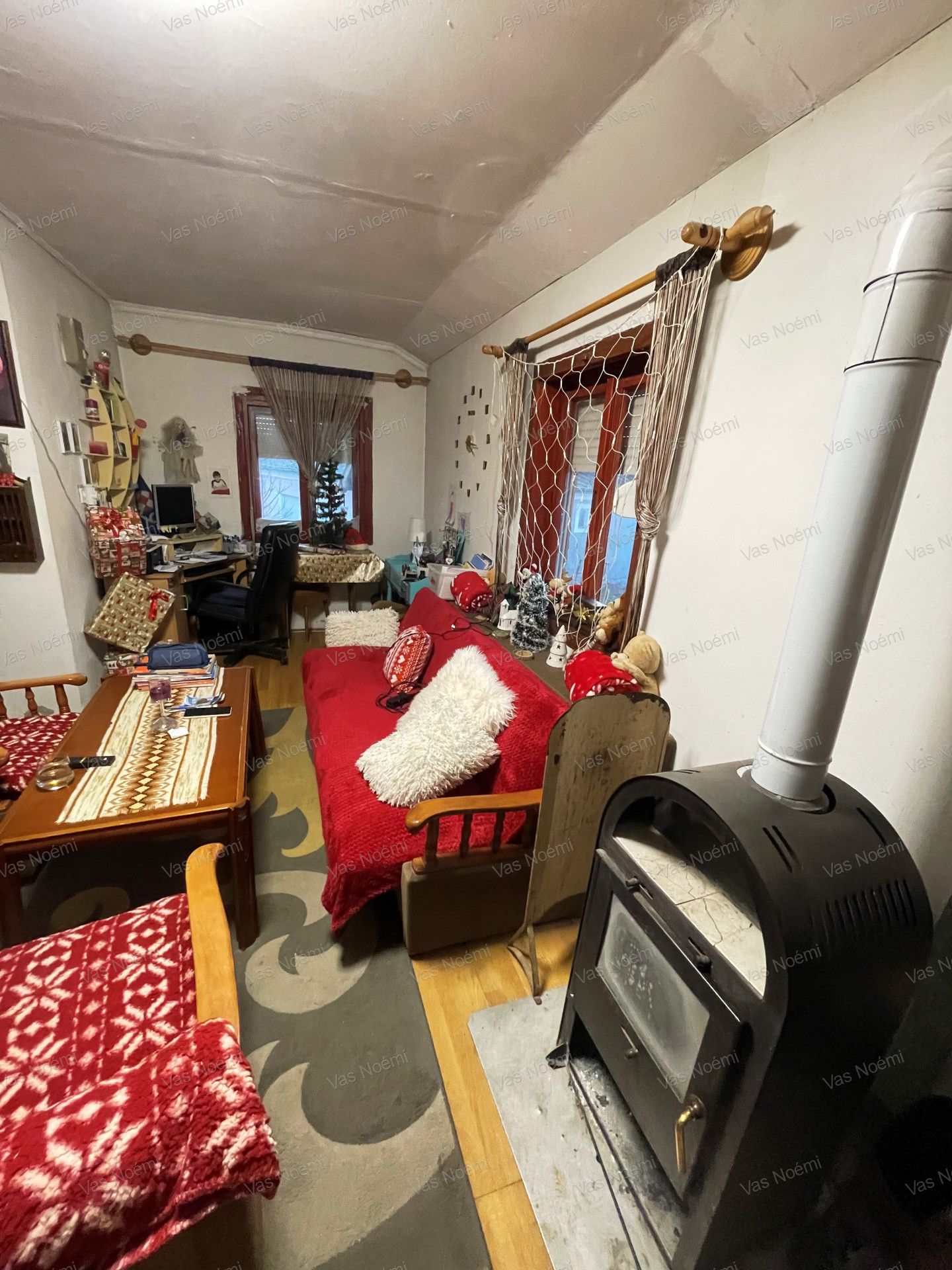 Fűtés: fa tüzelésű kályhával megoldott.