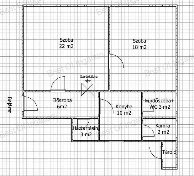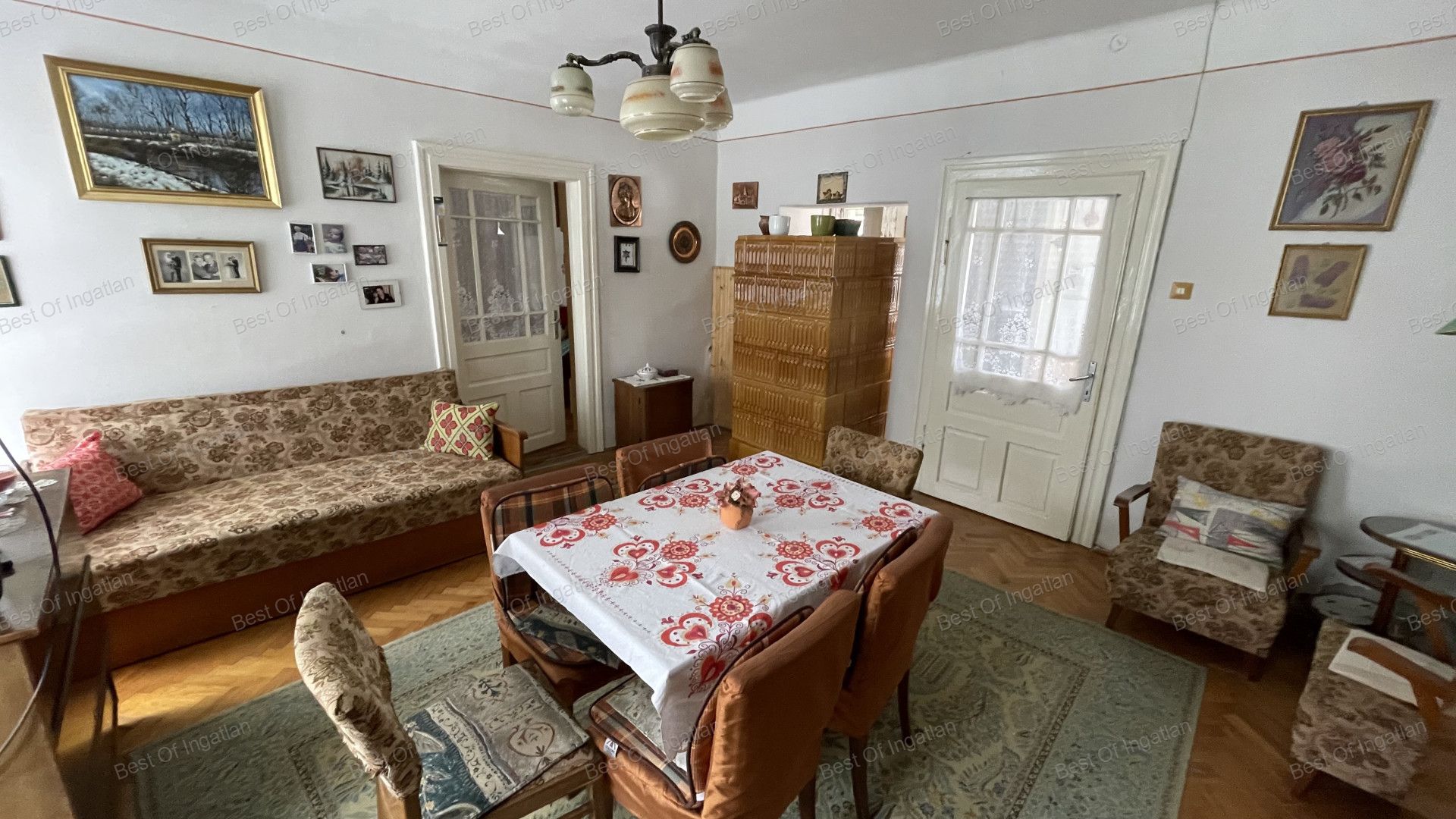 - fűtése konvektorral és cserépkályhával történik