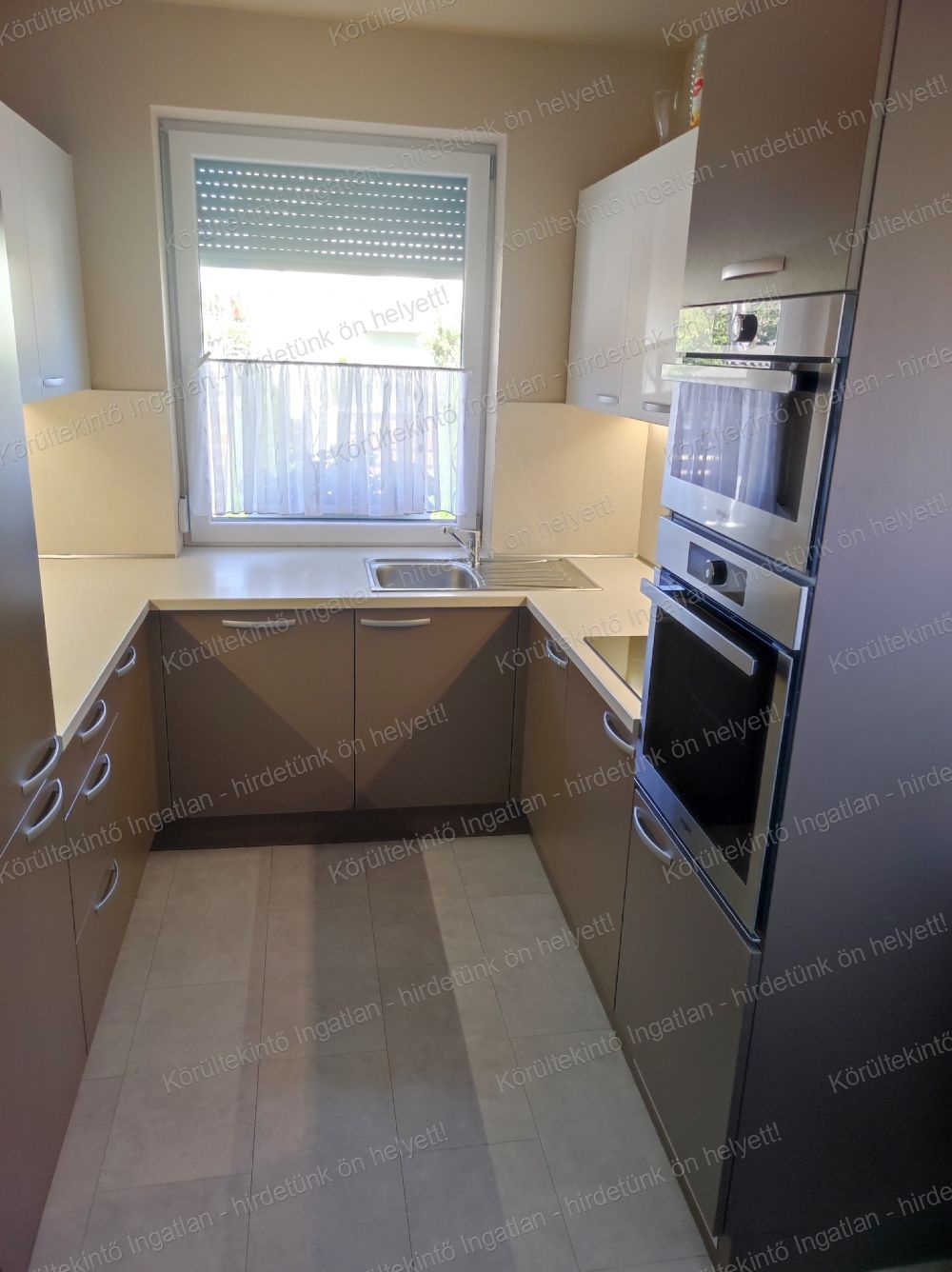 - tágas, amerikai konyhás nappali étkezővel, a konyhabútor modern, beépített inox Whirpool gépekkel felszerelt, és kamra is kapcsolódik hozzá.