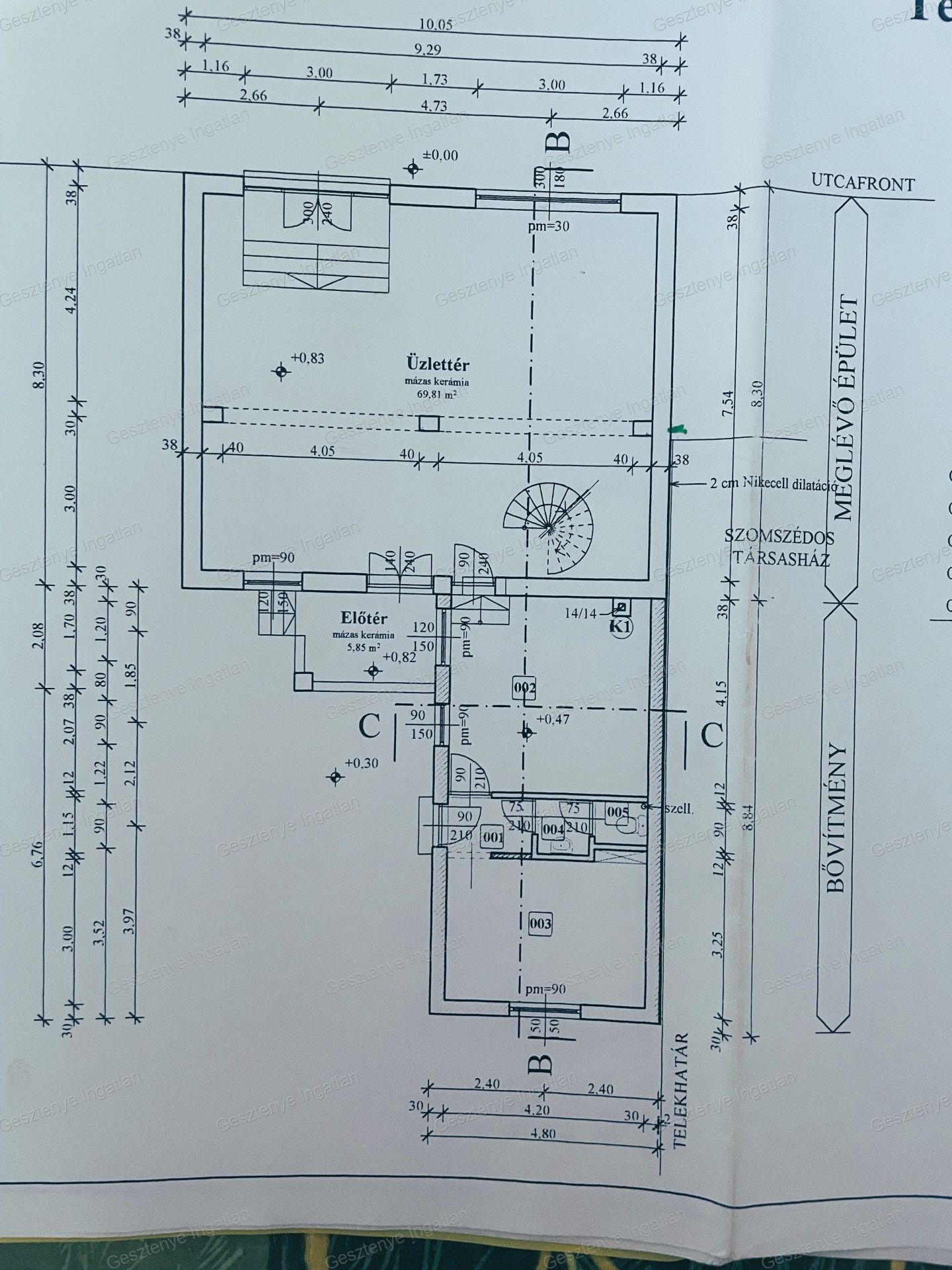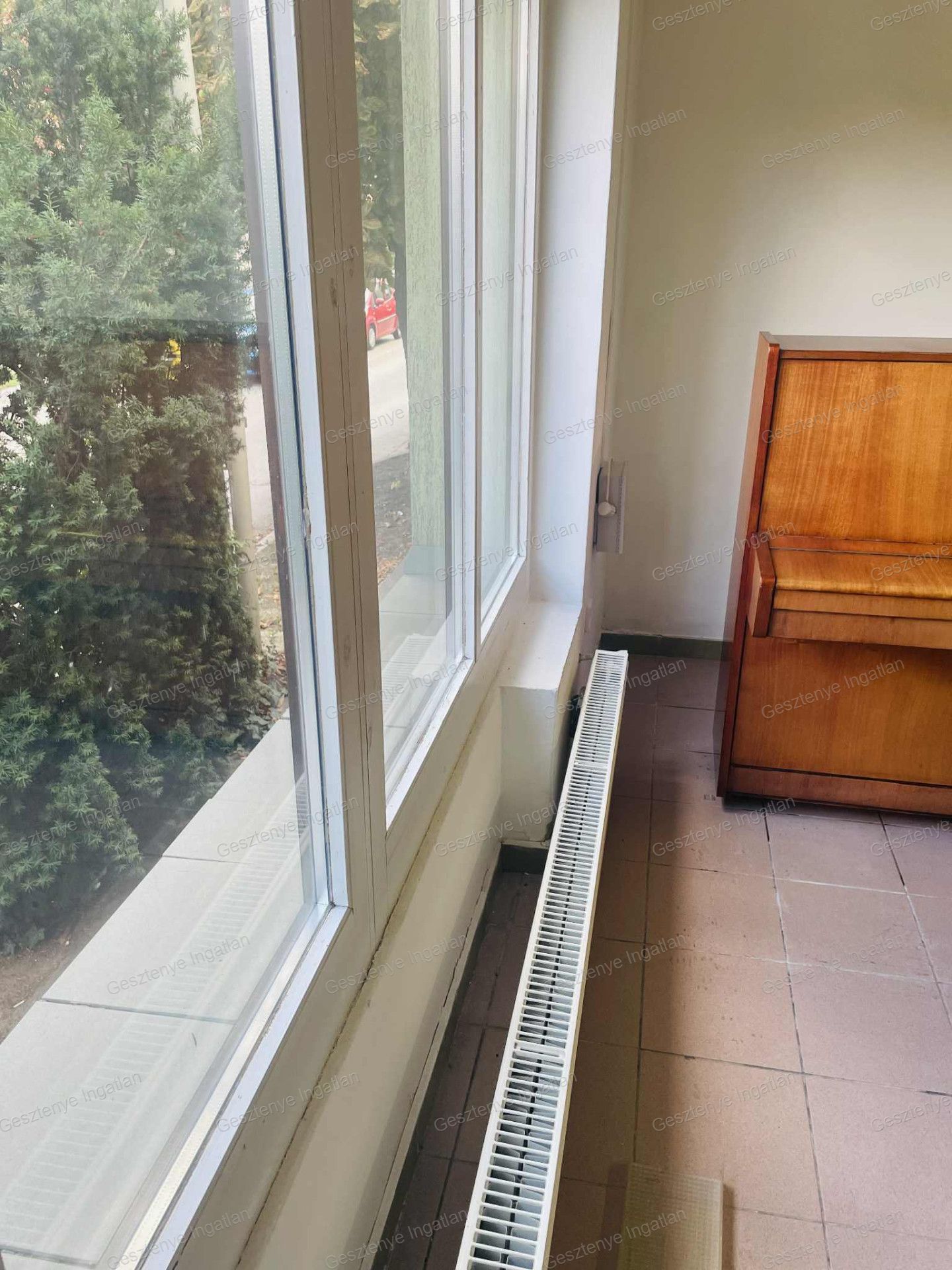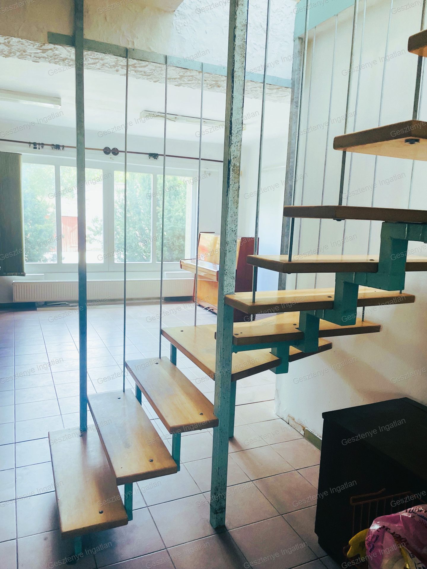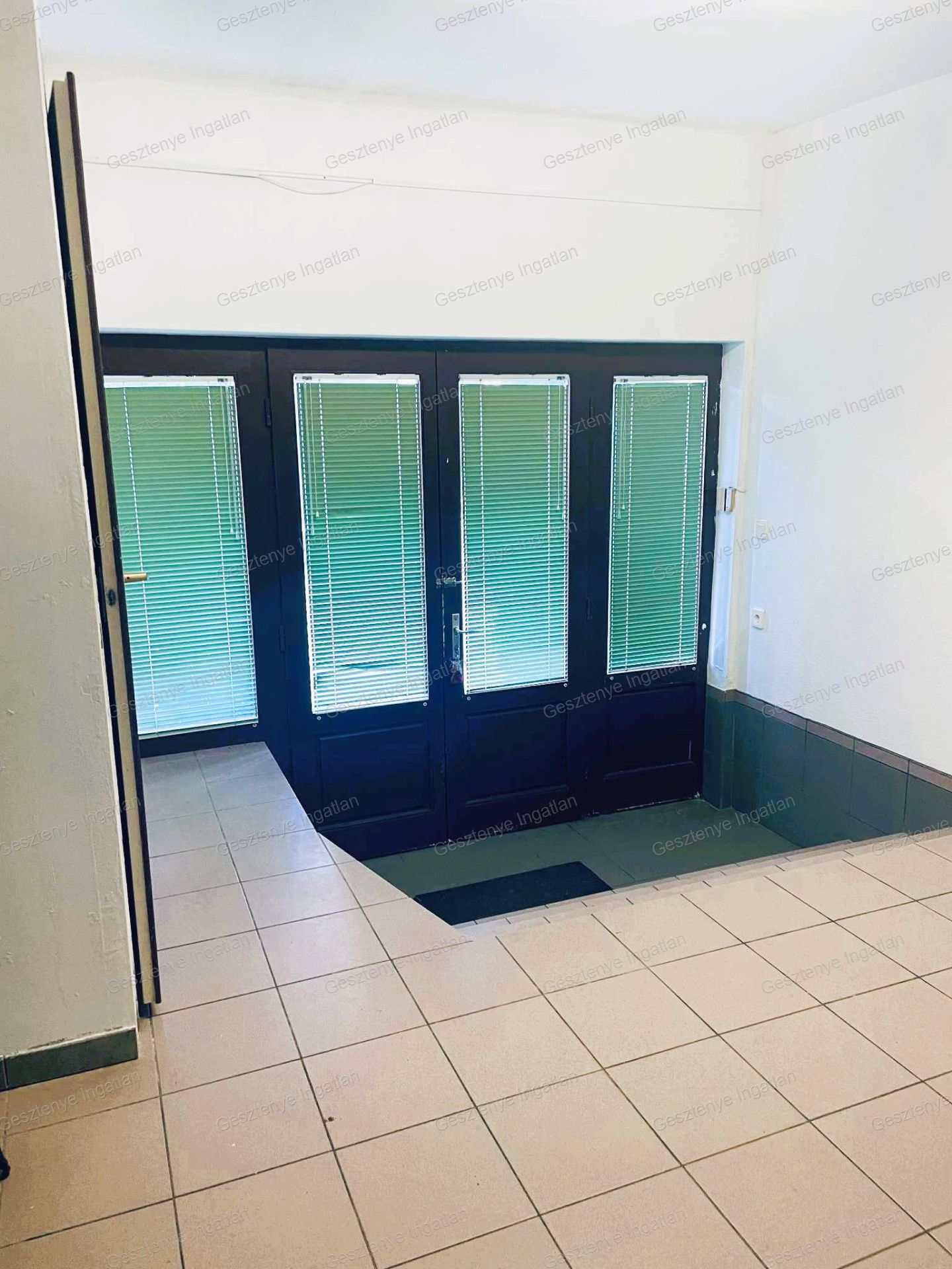 Az utcafronti nappali – amely korábban virágüzletként működött – portálüvegezéssel rendelkezik.