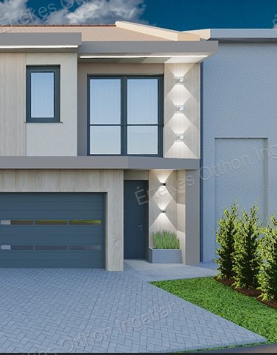Új építésű, két szintes tégla ikerház