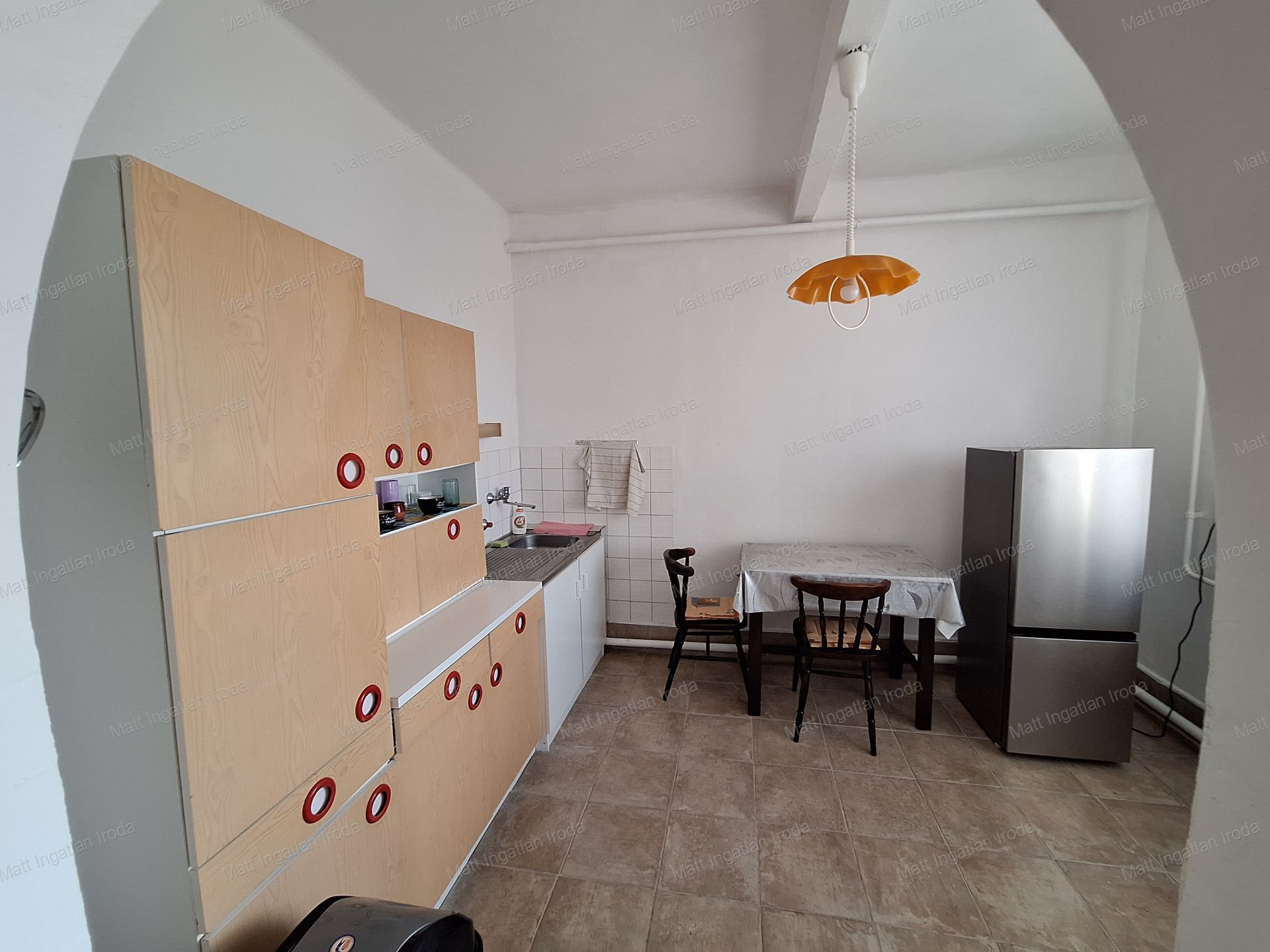 A felső lakrészbe külső lépcsőn tudunk bejutni. Tágas előszoba, konyha étkezővel, spejz, fürdőszoba és 3 szoba lett kialakítva.