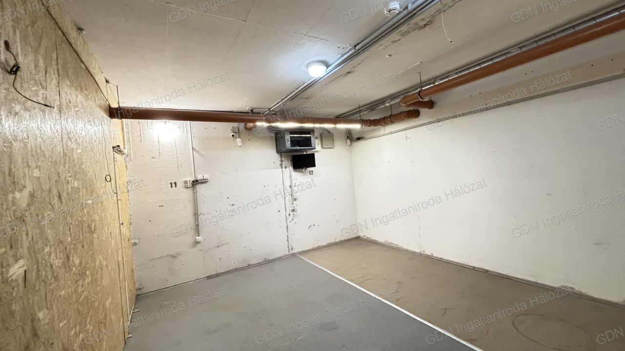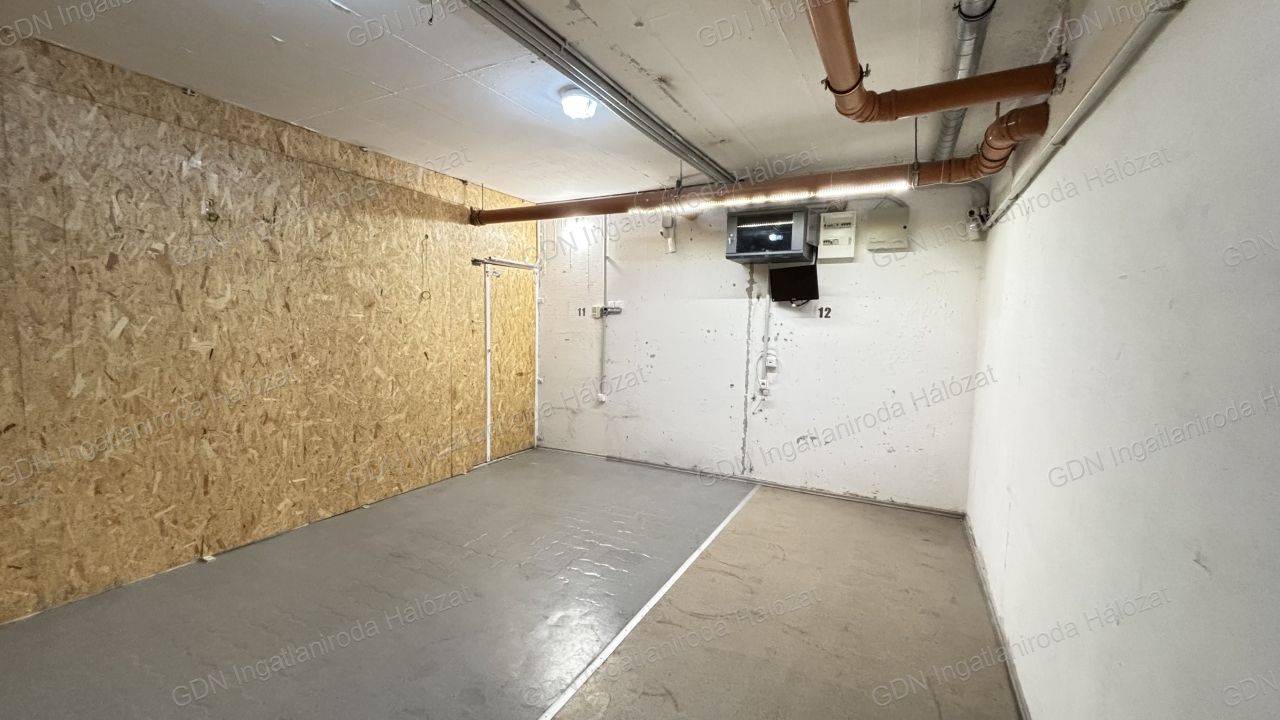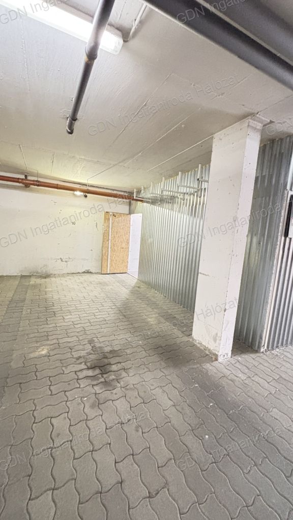 Teremgarázshely + raktárhelyiség egyben eladó – Budapest, IV. kerület, Megyeri út 207/D Eladó Újpest frekventált részén, a Megyeri úton egy 1 db teremgarázshely (13 m²) és a mellette található 1 db raktárhelyiség (20 m²) egyben, összesen 26 millió forintért. Főbb jellemzők: Garázs mérete: 13 m² – egy Transporter is kényelmesen befér Raktár mérete: 20 m² – almérővel felszerelve Biztonság: riasztórendszer, kamerarendszer Kialakítás: Eredetileg 2 garázshelyből lett kialakítva 2 oldalán betonfal, a másik kettő zártszelvény és betonvas váz Kívül trapézlemez borítás, belül OSB lap, köztes rétegben szigetelés Három zárbetétes ajtó, plusz hevederzár és leemelésgátló Raktárhelyiség: pormentesen zárt, PVC padlóburkolattal Tehermentes, nincs haszonélvező Elővásárlási jog érintettjei előzetesen jelezték, hogy lemondanak róla Elhelyezkedés: A Megyeri út jól megközelíthető, biztonságos helyszín, rendezett társasházi környezetben. Ideális választás azoknak, akik nagyobb járművet szeretnének biztonságosan tárolni, és szükségük van egy száraz, tiszta, jól zárható raktárra is.