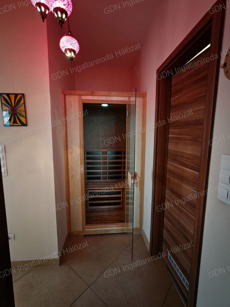 Csak nálunk! Exkluzív PENTHOUSE a 6. emeleten – teljes intimitás, körpanorámás terasz, prémium életérzés Zuglóban! Budapest XIV. kerületének egyik legkedveltebb lakóövezetében, a Cordia Thermal 1 lakópark legfelső szintjén eladó ez a páratlan adottságú, luxus érzetet sugárzó penthouse lakás, melyhez 103 m²-es, lenyűgöző körpanorámás terasz tartozik. A 6. emeleten mindössze két lakás található, így a lehető legmagasabb szintű intimitás, csend és nyugalom biztosított – távol a város zajától, de mégis mindenhez közel. Ez az a szint, ahol valóban megélhető a penthouse-ok egyedi, privát világot kínáló életérzése. Főbb adatok: Építés éve: 2011 Lakótér: 75 m² Terasz: 103 m² körpanorámával Közös költség: 32.000 Ft/hó benne van a fűtés és a hideg-meleg víz, szemétszállítás, takarítás, kertész,évente 4 ünnepi díszítés a társasházban, Energetika: C besorolás Fűtés: házközponti, egyedi mérés Állapot: szép állapotban, azonnal költözhető, tehermentes A lakás – letisztult egyszerű 2011-es design és modern kényelem. A tágas amerikai konyhás nappaliból két külön nyíló hálószoba és két kényelmes fürdőszoba érhető el. A magasfényű, modern konyhabútor és a beépített gépek az ár részét képezik, csakúgy, mint a lakásban található infraszauna. A lakás műszakilag kifogástalan: korszerű 3×25 A elektromos hálózat,riasztórendszer és 4 darab Midea hűtő-fűtő klíma gondoskodik a maximális kényelemről – télen és nyáron egyaránt. Csak minimális frissítést igényel (tisztasági festés, modern világítástechnika, esetleg fürdőszoba bútor), így rövid idő alatt mai design-ra emelhető. A PENTHOUSE esszenciája – 103 m² privát tetőterasz! A lakást körül öleli az óriási terasz és így 3 égtájról napozza be az ingatlant ami igazi különlegesség. Terasz beépítéssel akár télikert,kültéri zárható edzőterem vagy saját wellness részleg is kialakítható jakuzzival, finn-szaunával. Jelenleg hideg–meleg vizes zuhany áll rendelkezésre a teraszon. A zöldtető elemek és az aktív tetőszerkezet lehetővé teszik még nagyobb növények, akár saját tetőkert telepítését is. A képeken néhány éves tetőkert látható jelenleg várja új tervezőjét a csodás kert. A hatalmas üveg tolóajtók jó időben szinte egybeolvasztják a nappali tereit a terasszal, így a lakás térérzete messze túlmutat a megszokott alapterületeken. Műszaki minőségnek elég a Cordia méltán híres vállalat hírneve,de néhány alap információ a teljesség igénye nélkül. -Beton + 30-as porotherm falazat -15 cm dryvit szigetelés -Prémium minőségű panoráma nyílászárók.Kiváló hő- és hangszigetelés -Elektromos redőnyök -Zöldtető automata öntöző rendszer -Biztonságtechnika és riasztó -Kamerás zárt lépcsőház és parkoló A lakóközösség kifejezetten rendezett, kulturált és igényes, ami tovább növeli az ingatlan értékét és élhetőségét. Elhelyezkedés – zöld környezet, aktív életmód, minden karnyújtásra A lakópark közvetlenül a Rákos-patak partján, a Paskál Fürdővel szemben helyezkedik el. A környék nyugodt, biztonságos és folyamatosan fejlődik. A közelben: -futópálya, kerékpárút, sportpálya,élelmiszerbolt -újonnan megnyitott bevásárlóközpont éttermekkel, üzletekkel, szolgáltatásokkal Tömegközlekedés: 1 perc sétára. Parkolás és tárolók -Díjmentes parkolási övezet -Opcionálisan vásárolható: 2 teremgarázs-beálló valamint 2 db tároló Jöjjön el nézze meg és tegyen ajánlatot I.V.
