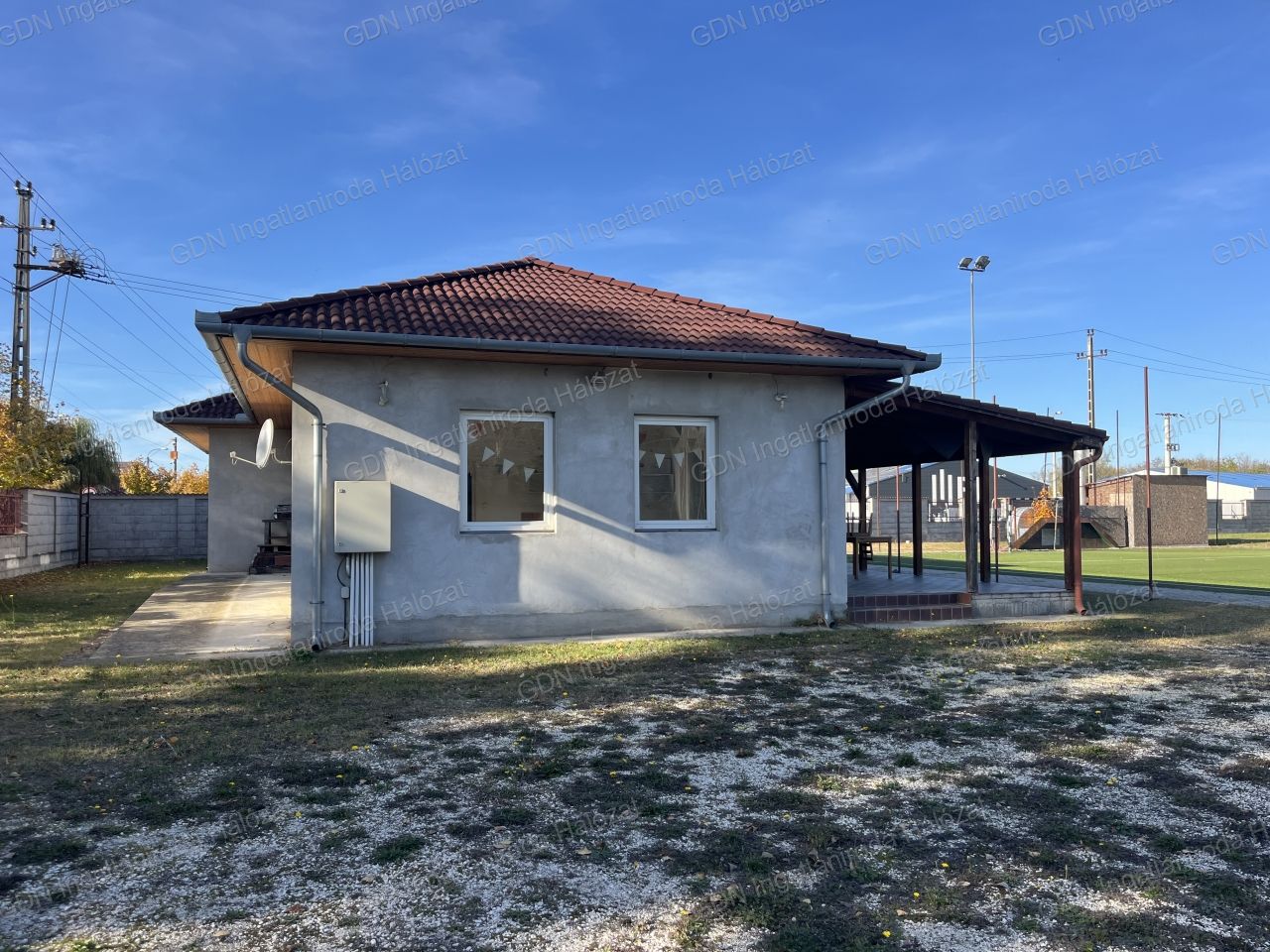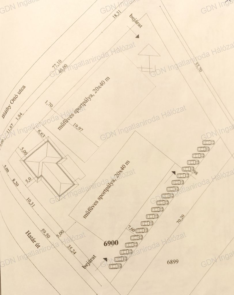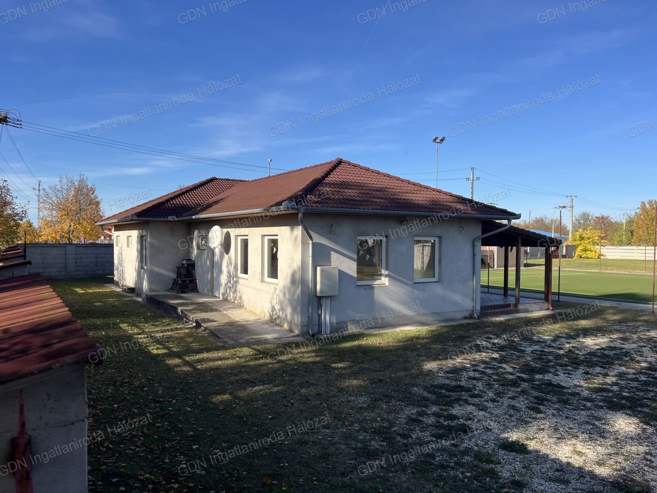 Az ingatlan saroktelken helyezkedik el, körbekerítve, két utcáról behajtási lehetőséggel.