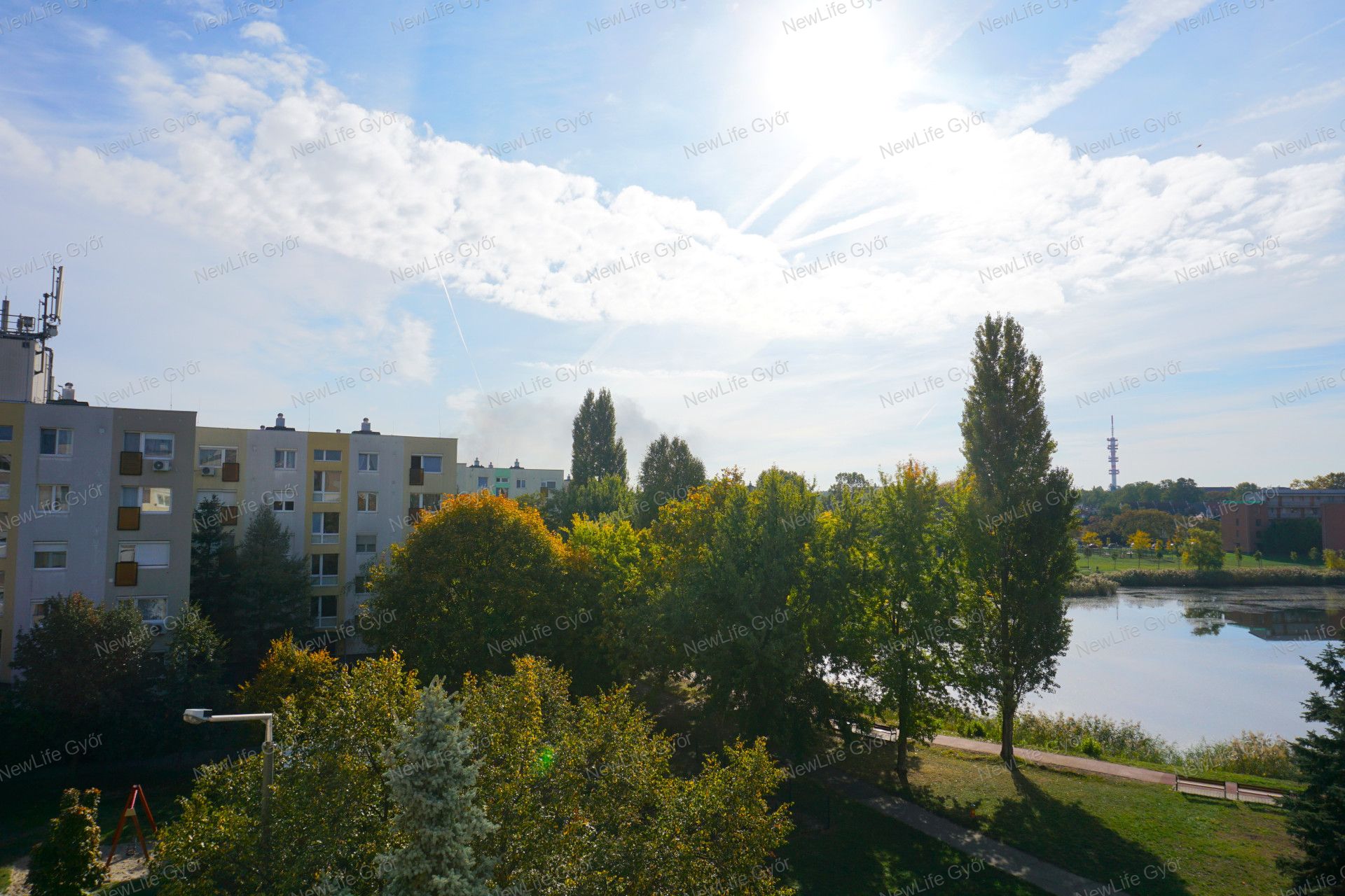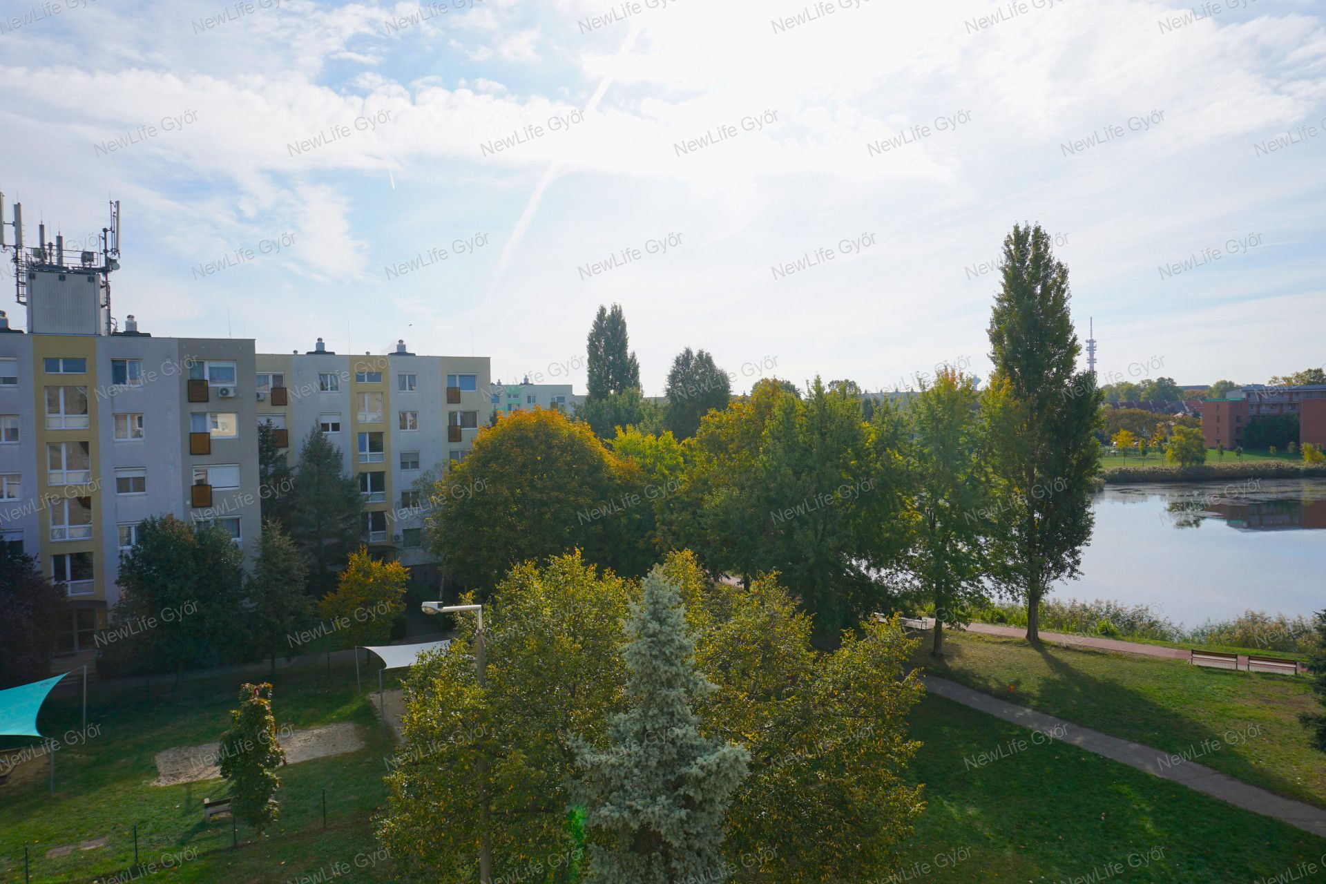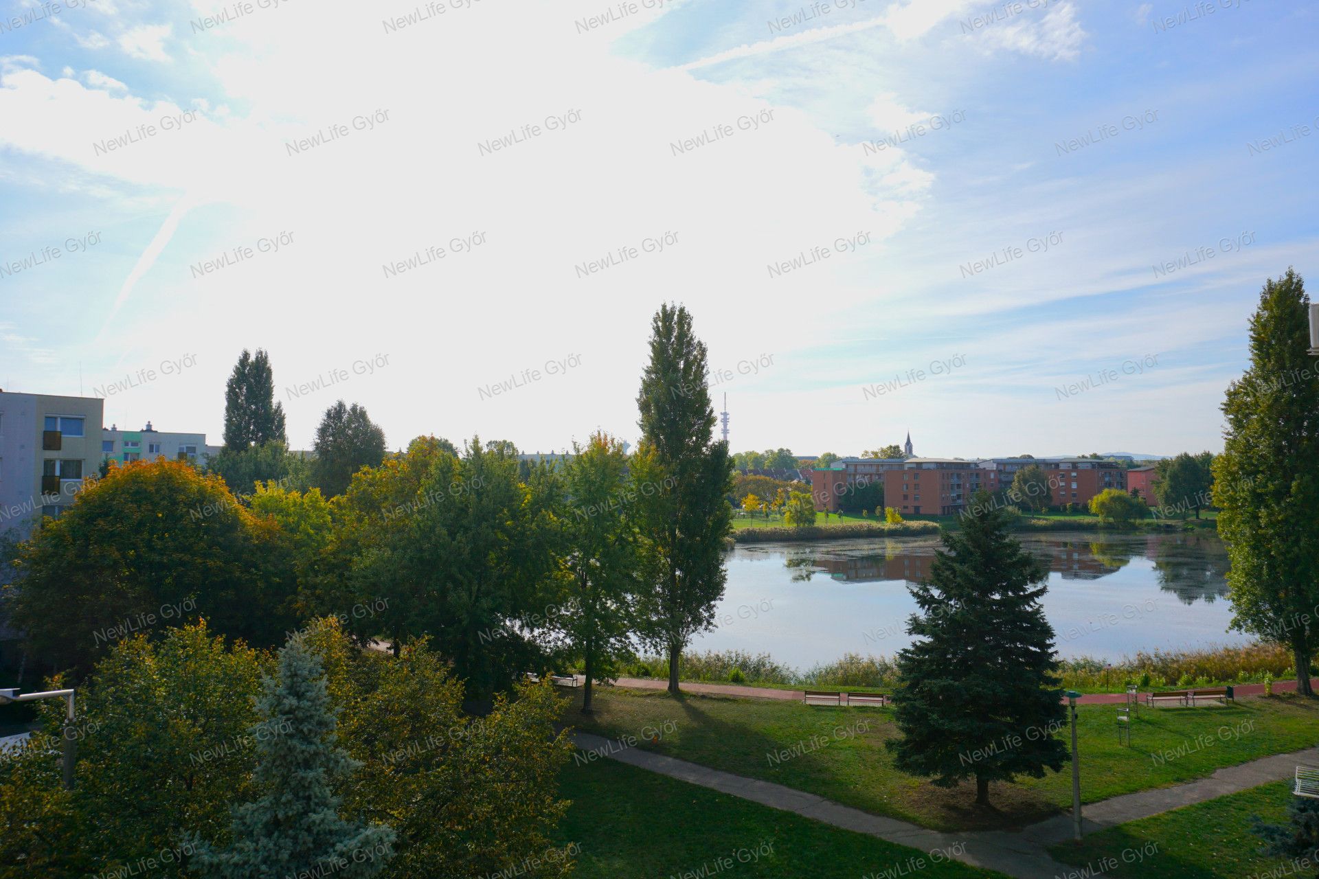 A konyha és az egyik szoba zöldövezetre, a szabadhegyi tóra néz.