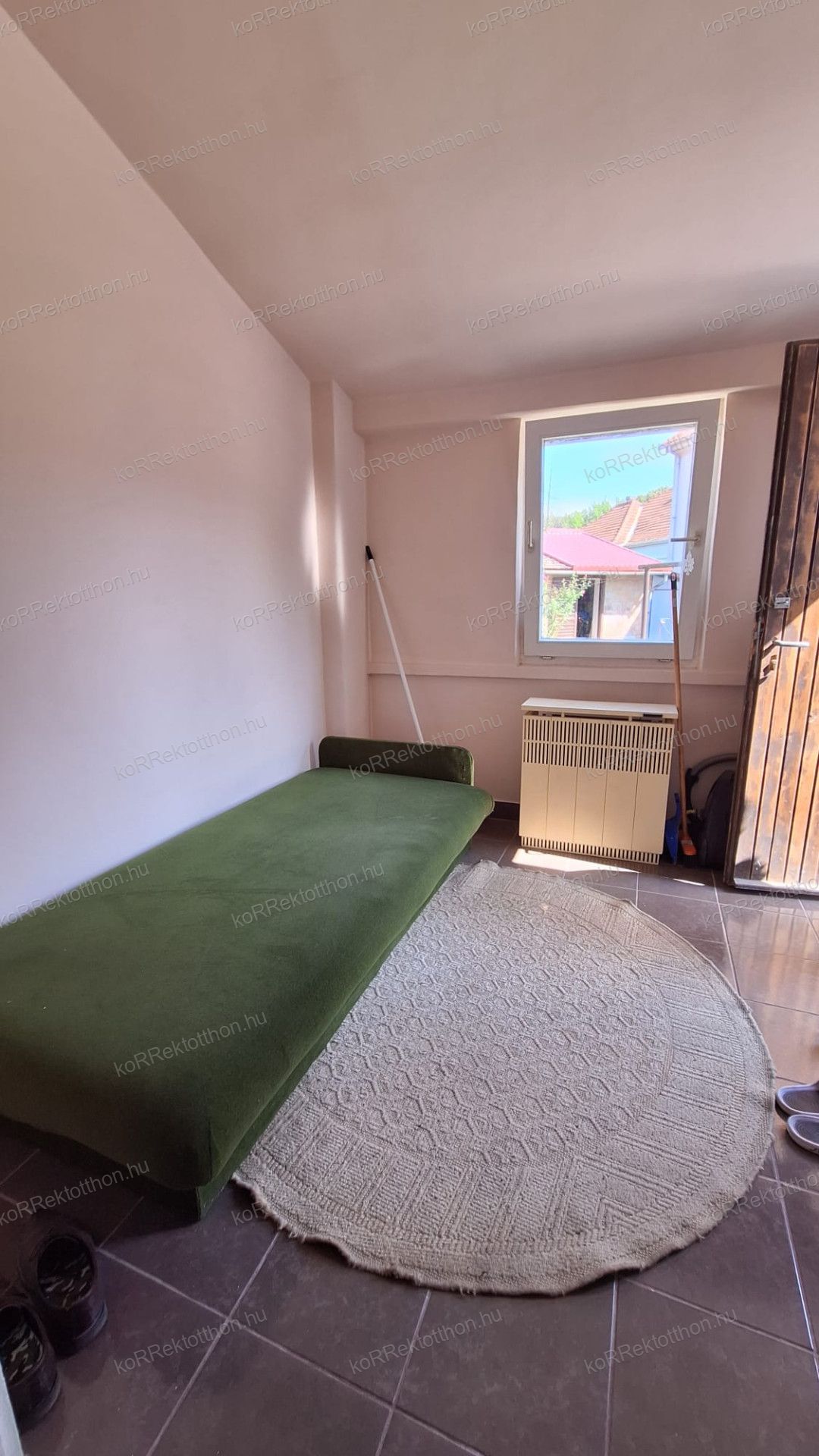Az ingatlanba lépve a tágas előszobába érkezünk, mely akár étkezőként is funkcionálhat. A konyhából nyílik a tágas, világos nagyobb méretű szoba, a felújított fürdőszoba és a spájz. A kisebbik szoba a nagyszobából nyílik.