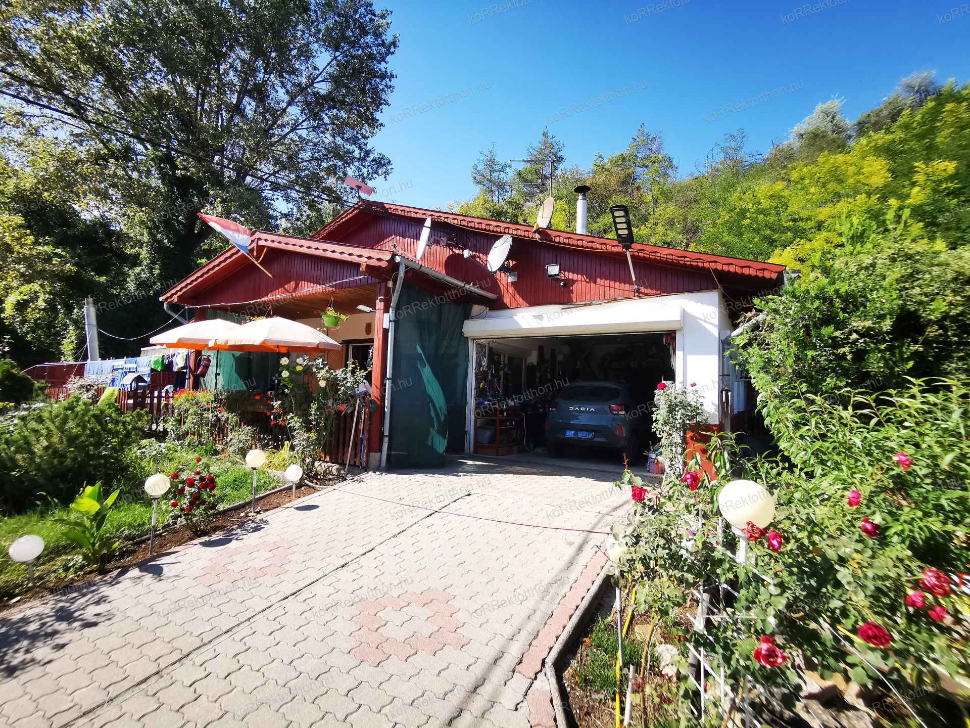 2 garázs, kazánház, tárolók, fedett terasz