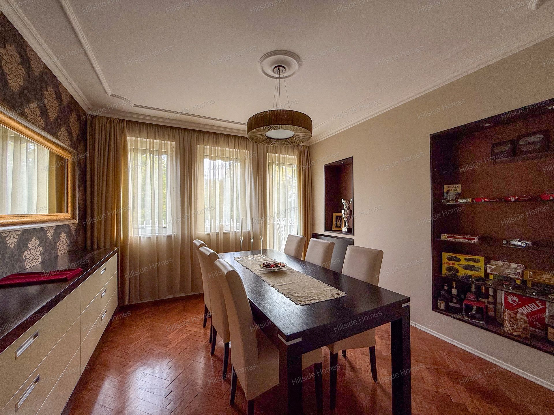 Az otthon különleges atmoszféráját a belsőépítész által megálmodott enteriőr, a nagypolgári terek, valamint a panorámás kilátás teszik igazán egyedivé.