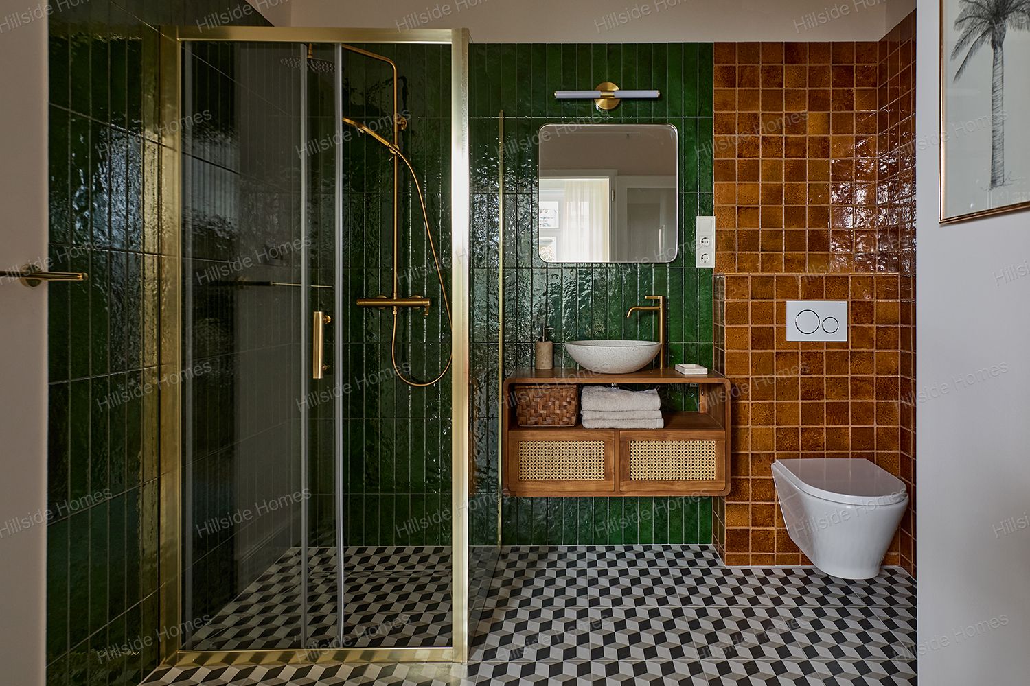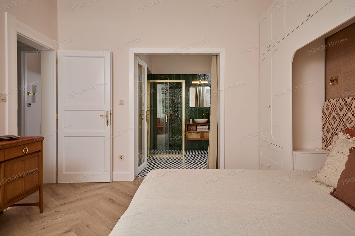 A hálószobák egyike saját, üvegajtós fürdőszobával, a másik külön zuhanyzóval és WC-vel rendelkezik.