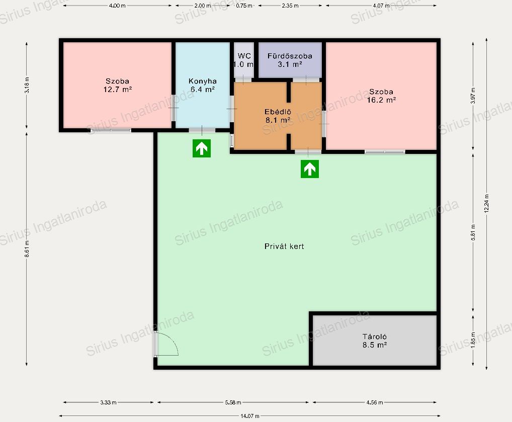 | Alapterület | 46 m2, 70 m2-es telken |