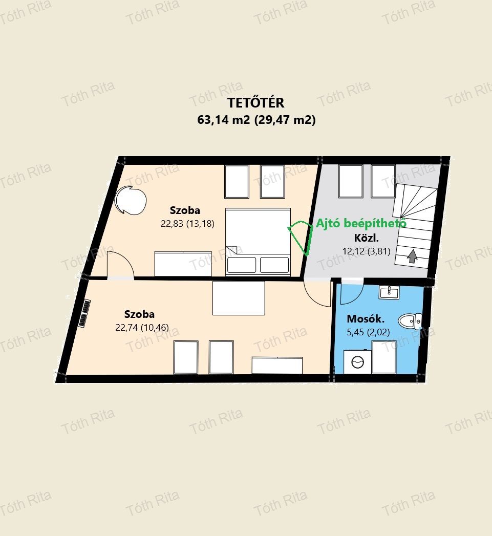 Fiatal párnak: Albérlet vagy kisebb lakás után bruttó 107 m2-t vehettek birtokba a lakás minden zeg-zugának kihasználásával.
