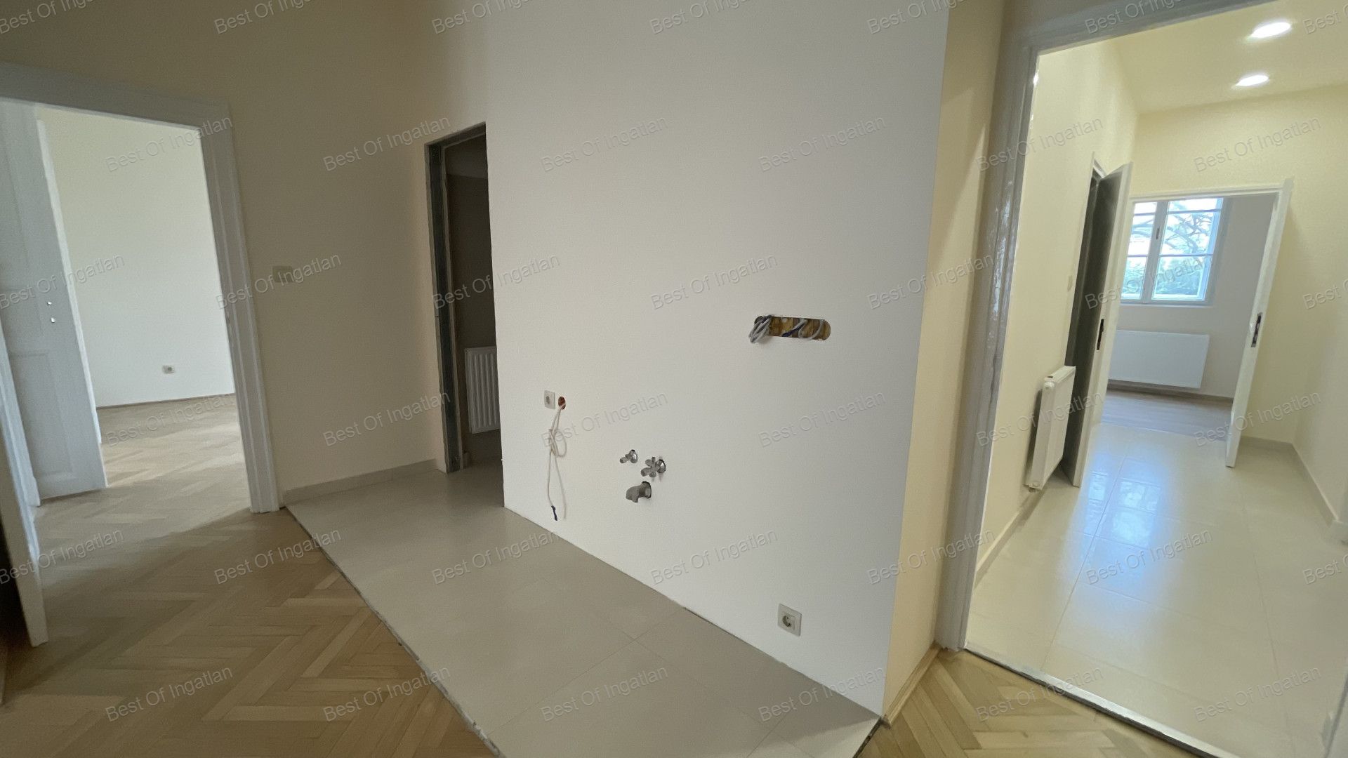 A parkettát felcsiszolták, a hideg burkolatokat kicserélték.