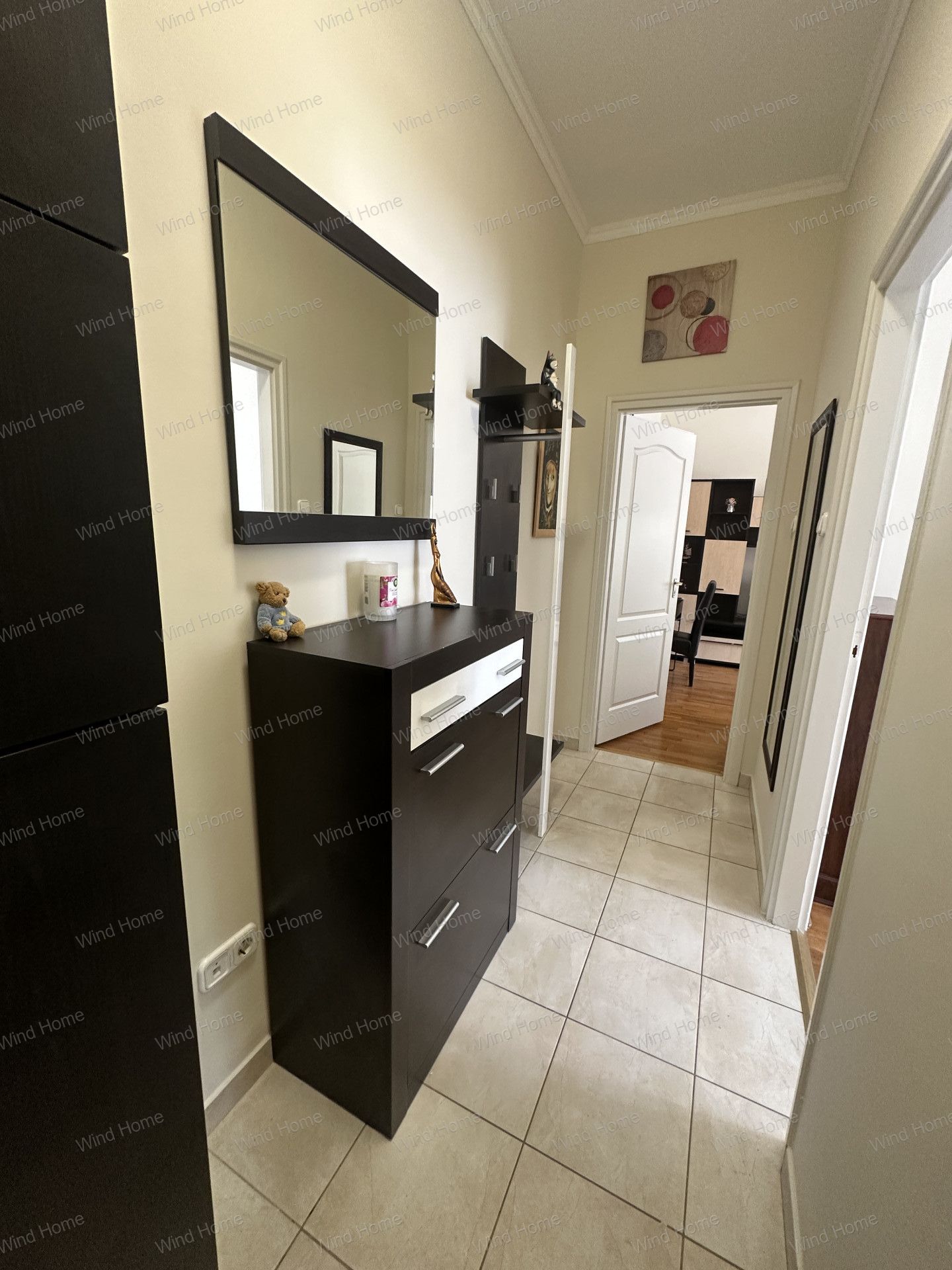 A rendezett, tiszta lépcsőházban található lakás teljesen bútorozott, új műszaki eszközökkel és bútorzattal felszerelve: többek között mosógép és mosogatógép is a felszereltség része.