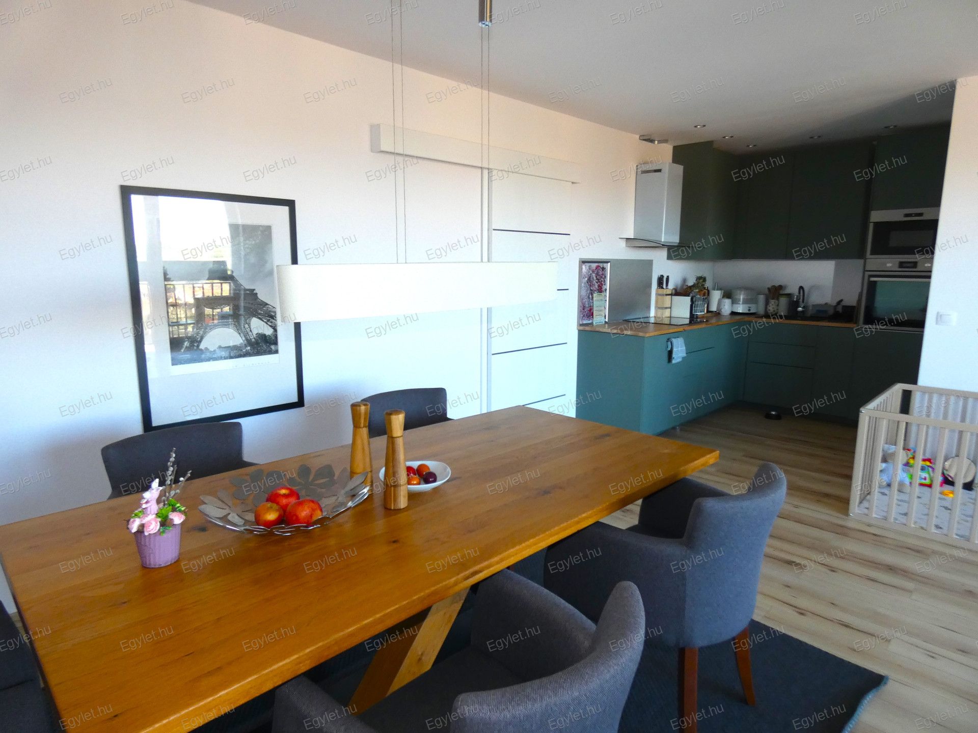 Kényelem, panoráma, minőség! Ezekkel a szavakkal lehet jellemezni ezt a kivételes adottságokkal rendelkező ingatlant, amit most megvételre kínálunk Mogyoródon. Örökpanorámás társasházban lévő, teraszos, 79 nm-es, 3 szobás, 2023-ban átadott(szinte új), víz-levegő hőszivattyús lakás. Minőségi alapanyagokból, igényes kivitelezés jellemezte a projektet, ahol a biztonság és a kényelem mellett az energiatakarékosság volt a fő szempont. A lakás fűtéséről, hűtéséről, valamint használati meleg víz ellátásáról víz-levegő hőszivattyú gondoskodik, melynek energia szükségletét H tarifáról biztosítják. Az ingatlan külső szigetelése Dryvit rendszerrel, valamint három rétegű nyílászáró rendszerrel lett kialakítva. Ennek eredményeképpen a rezsi költségek minimalizálódtak. A lakás nappalijából nyíló tágas erkélyen keresztül elénk tárul a csodálatos panoráma. Az ingatlan egy rendezett gazdasági viszonyokkal rendelkező négy lakásból álló társasházban helyezkedik el.