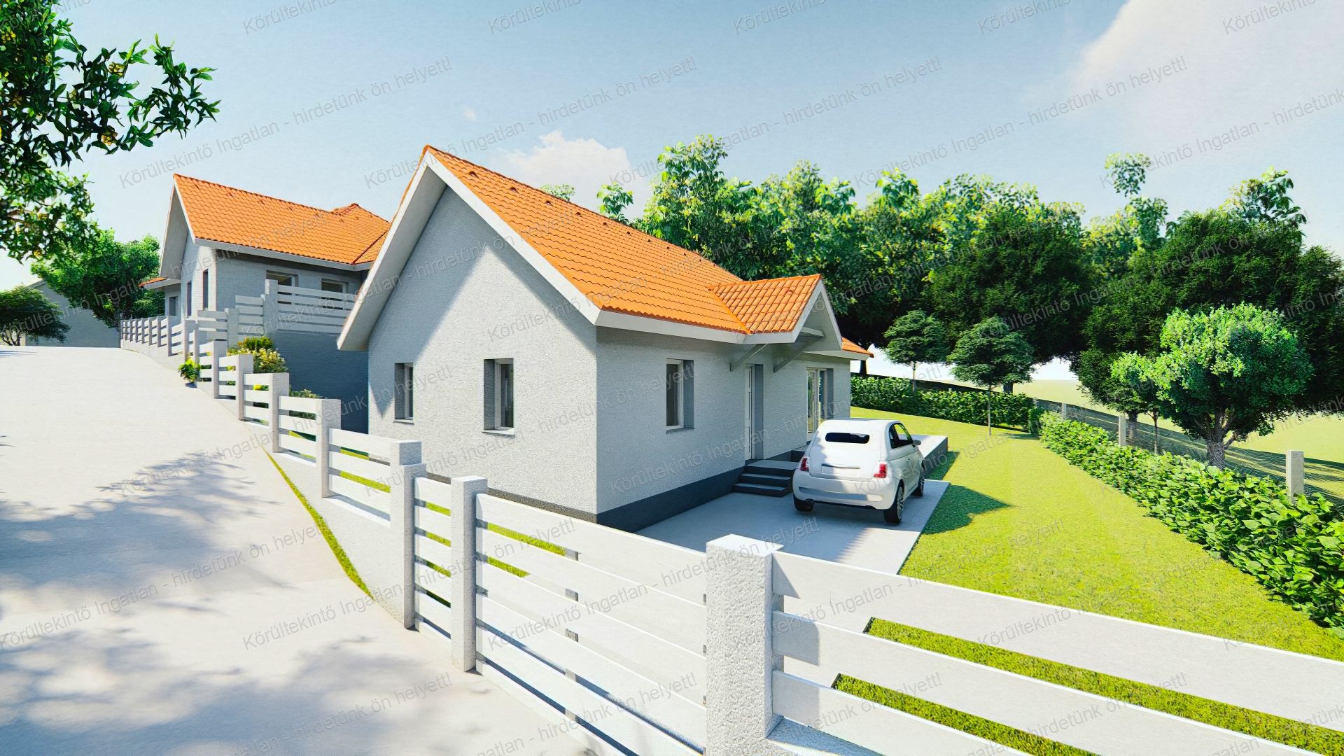 Pomázon a Meselia déli oldalában, csendes környezetben 463 nm-es saját, kizárólagos használatú kerttel rendelkező, egy szintes, nappali + 4 hálószobás ikerház-fél eladó.