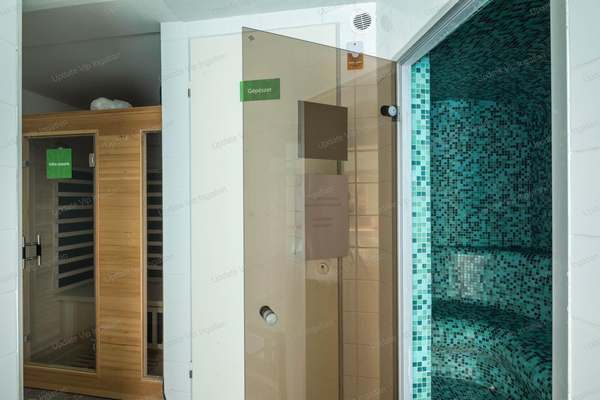 -Belső wellness: Úszómedence (fűtött) 12m hosszú,120cm mély, szauna, gőzkabin,
