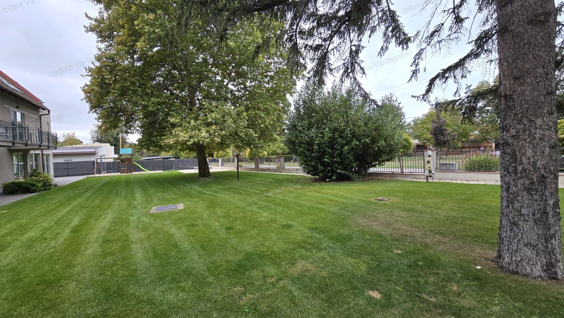 -Parkosított kert (napozóval, játszótérrel)